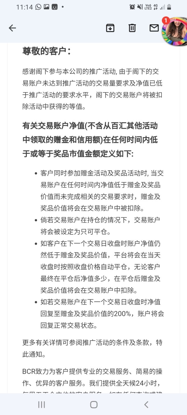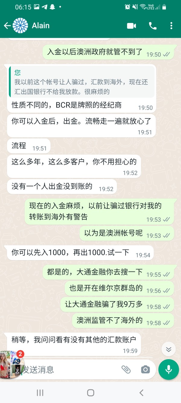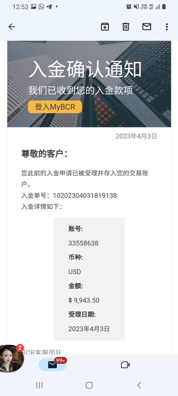 Customer service emerges as one of BCR's strongest attributes, earning an impressive 9 out of 10 rating based on consistent positive user feedback regarding responsiveness and service quality. According to available user reviews, the broker's customer support team demonstrates strong responsiveness and effective problem-resolution capabilities.