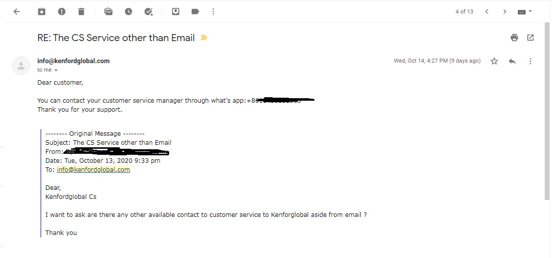 The quality of customer service at Kenford is notably poor, with many users reporting unresponsive support. This lack of effective communication can be detrimental, especially when traders encounter issues that require immediate assistance.