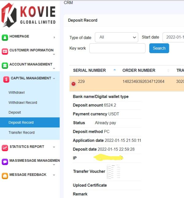 Without verified regulatory oversight from recognized financial authorities, clients lack important protections typically associated with properly supervised brokers. The limited availability of company background information, including corporate structure, management team details, and operational history, further undermines confidence in the broker's reliability. Professional traders typically require comprehensive due diligence information about their chosen brokers. This includes regulatory compliance records, financial stability indicators, and industry reputation metrics, most of which are unavailable for Kovie. These transparency concerns significantly impact the broker's trustworthiness and suggest potential clients should exercise extreme caution when considering this platform.