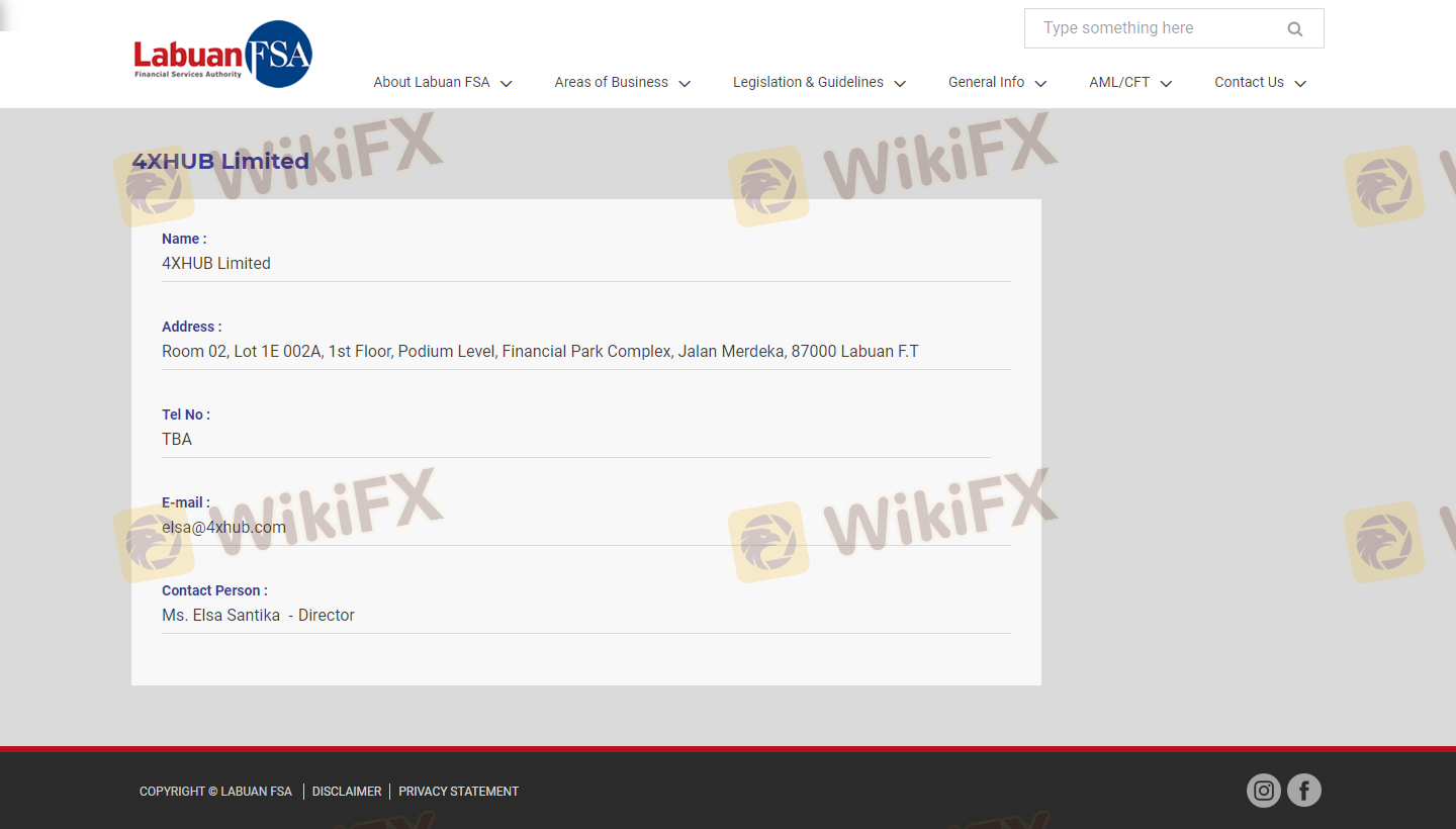 Regulation is a critical factor in determining the safety and reliability of a trading platform. 4xhub claims to be regulated by the Labuan Financial Services Authority (LFSA), which is responsible for overseeing financial services in the Labuan territory of Malaysia. However, it is essential to scrutinize the actual regulatory standing of the broker.