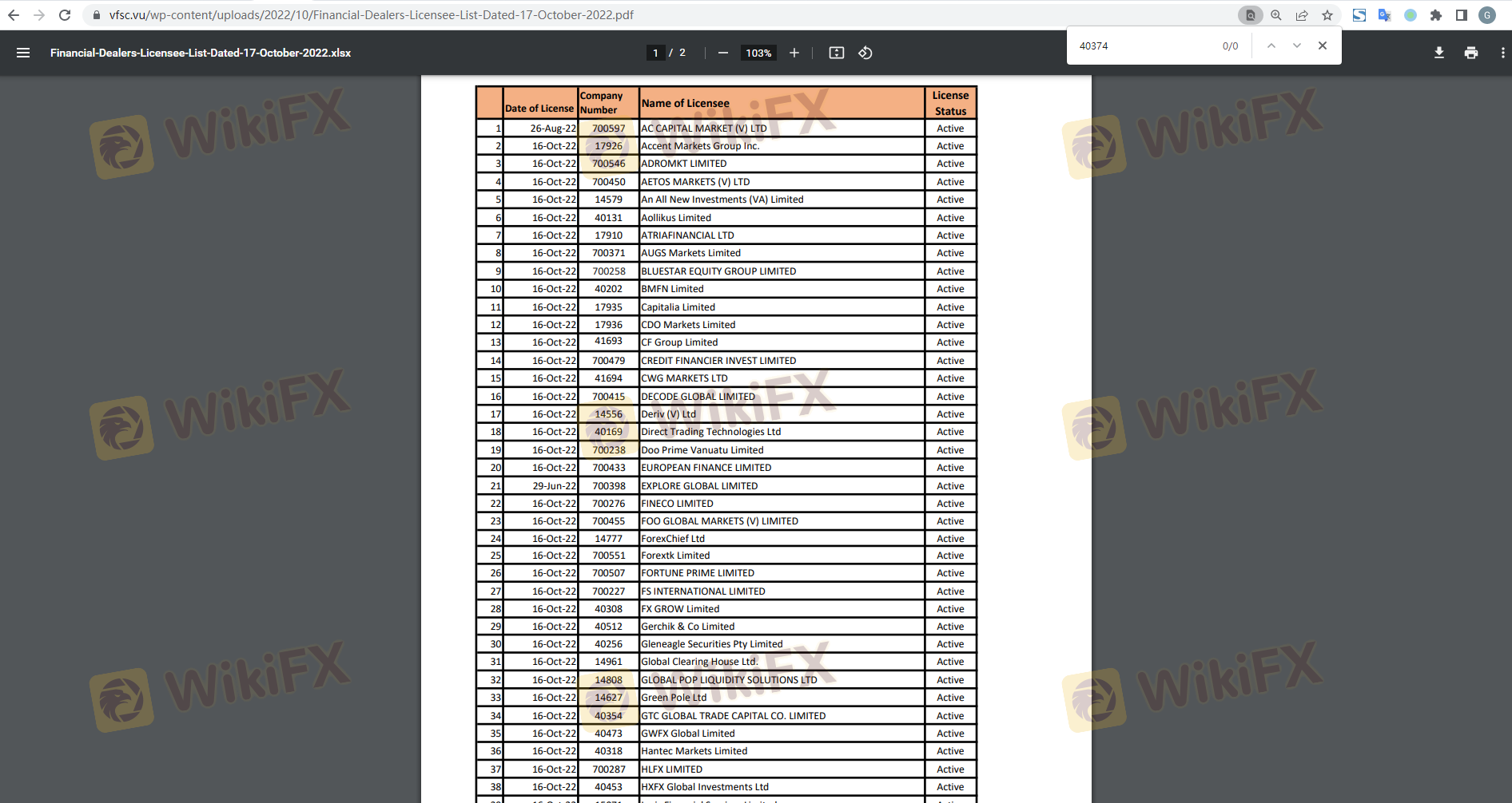 | Vanuatu Financial Services Commission | 40374 | Vanuatu | Not Verified |