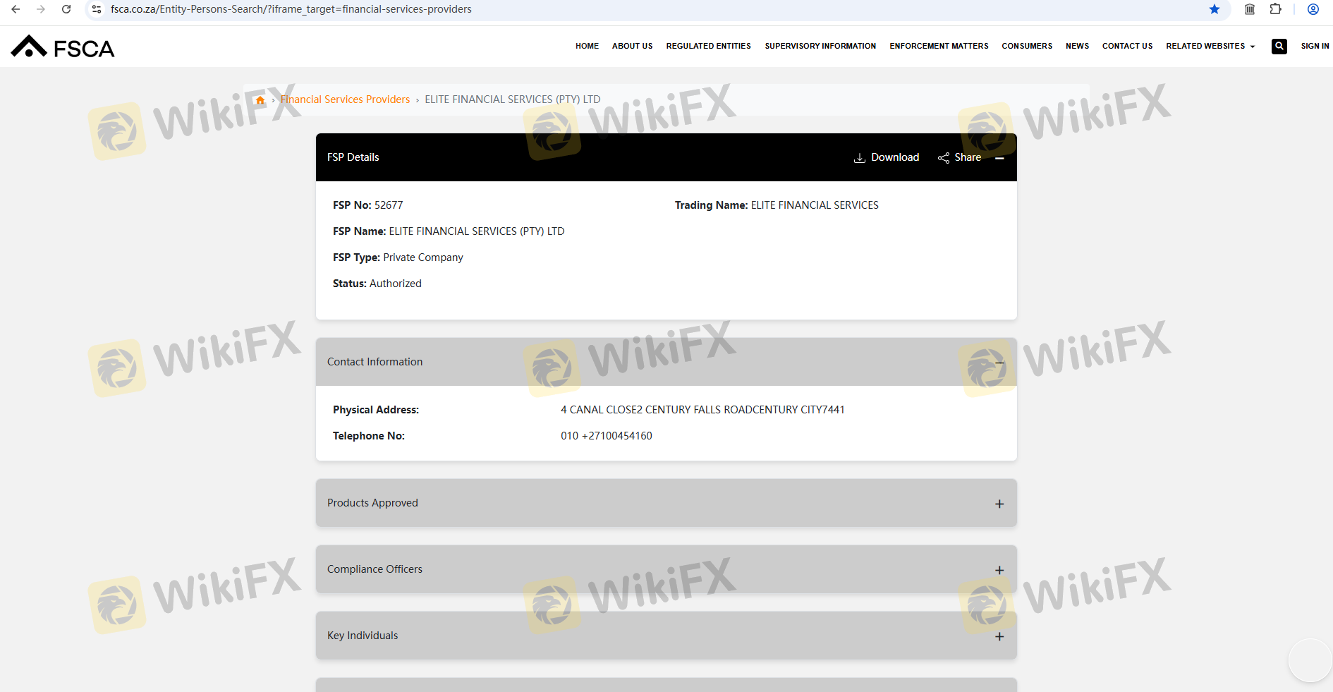 | FSCA | 52677 | South Africa | Exceeded |