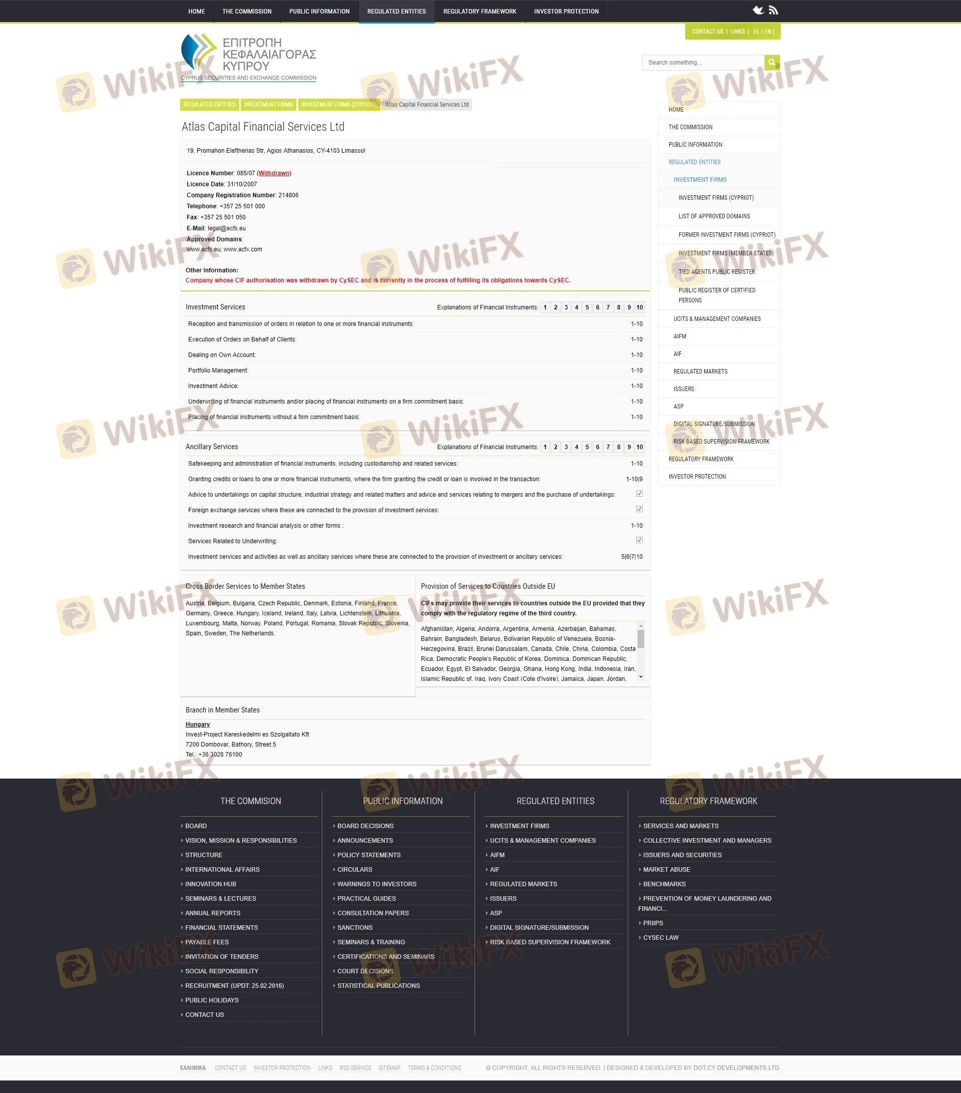 | CySEC | 085/07 | Cyprus | Suspended |