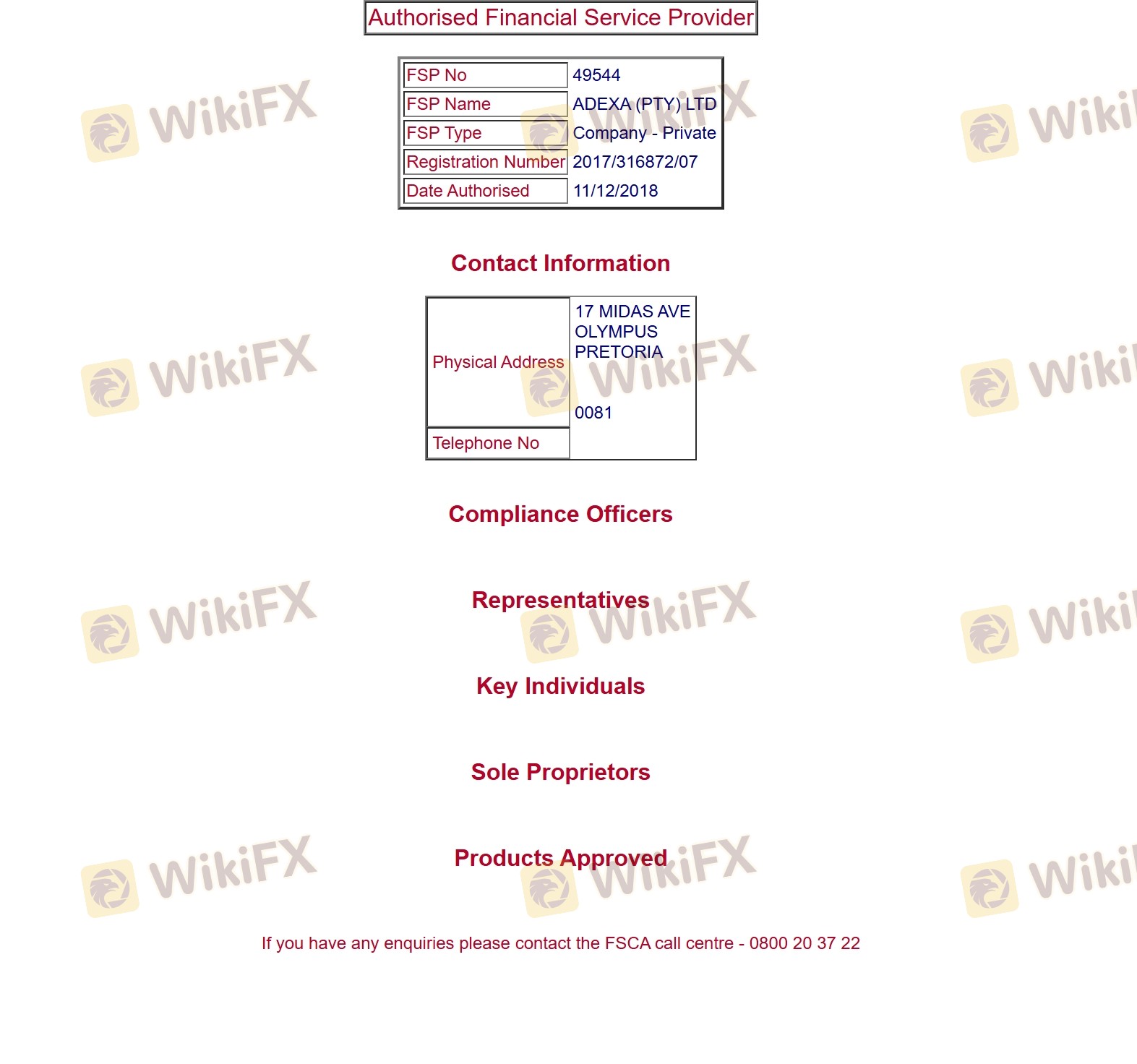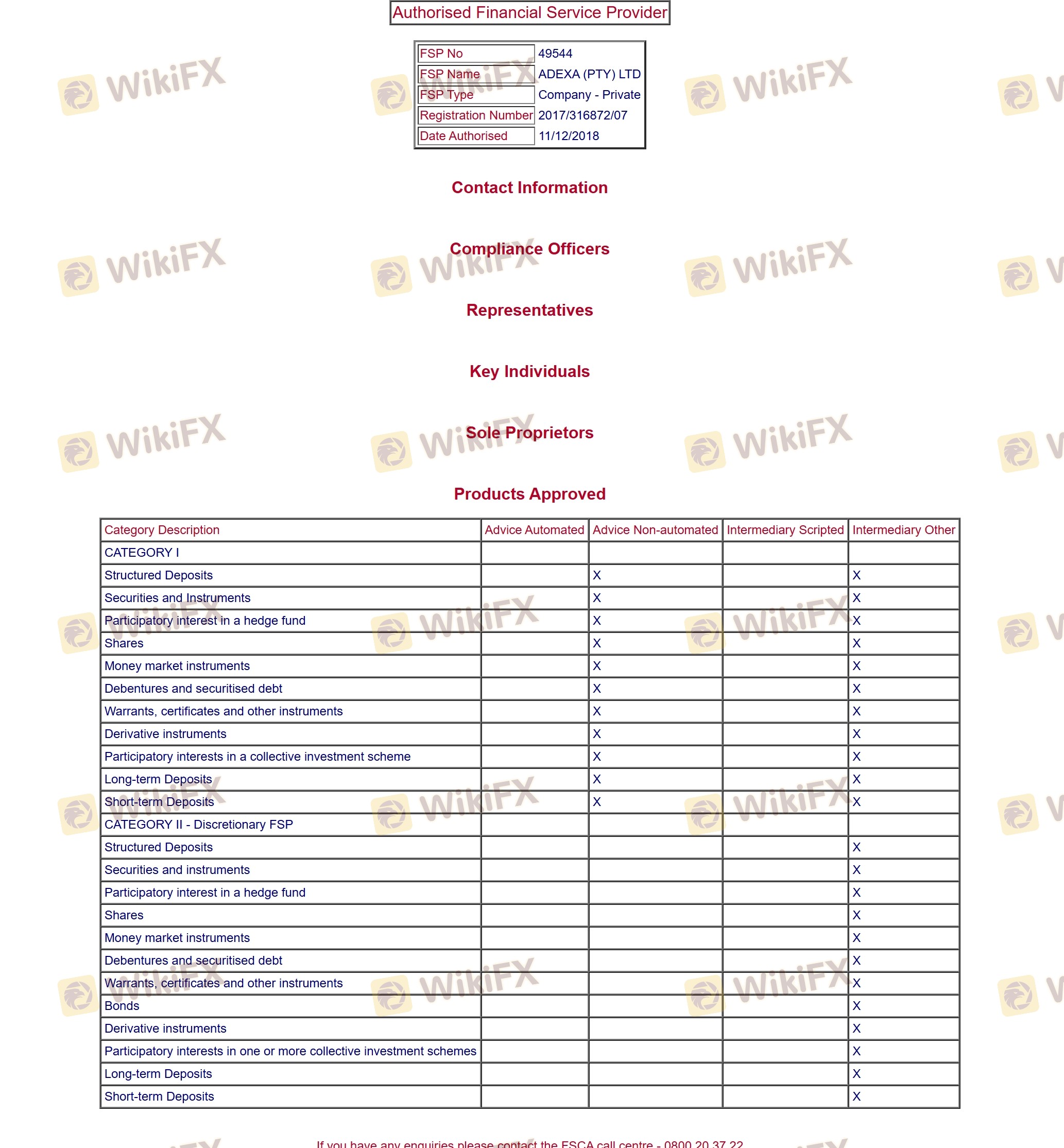 Regarding the legitimacy of ADEXA forex brokers, it provides FSCA and WikiBit, .