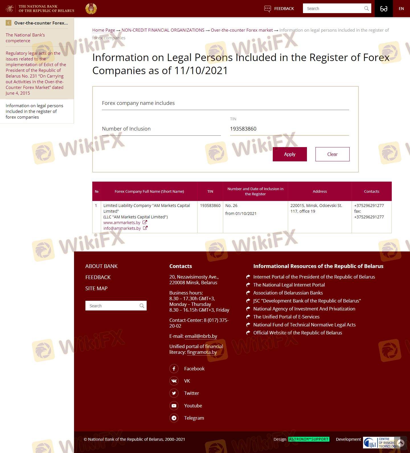 The regulatory status of a broker is a critical factor in determining its legitimacy. AM Markets claims to be regulated by the National Bank of the Republic of Belarus (NBRB) under license number 193583860. However, many traders question the effectiveness and credibility of this regulation, as it does not carry the same weight as licenses from more recognized regulatory bodies like the Financial Conduct Authority (FCA) in the UK or the Commodity Futures Trading Commission (CFTC) in the US.