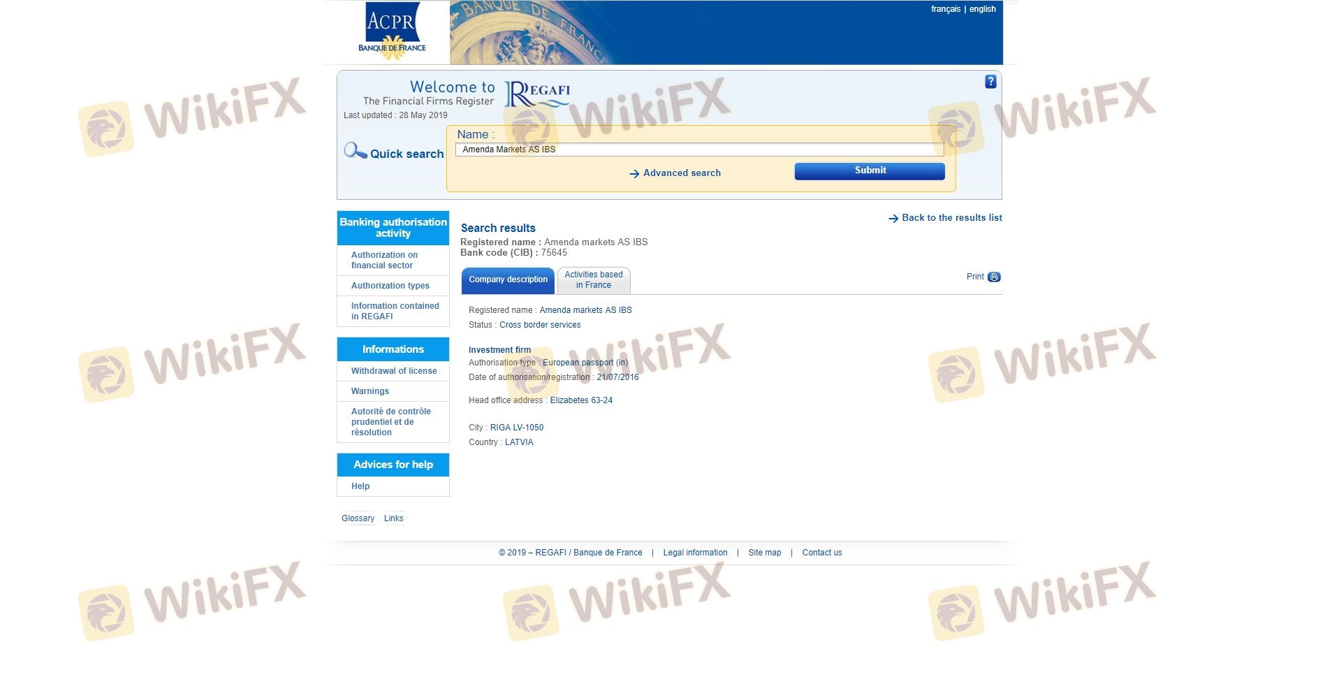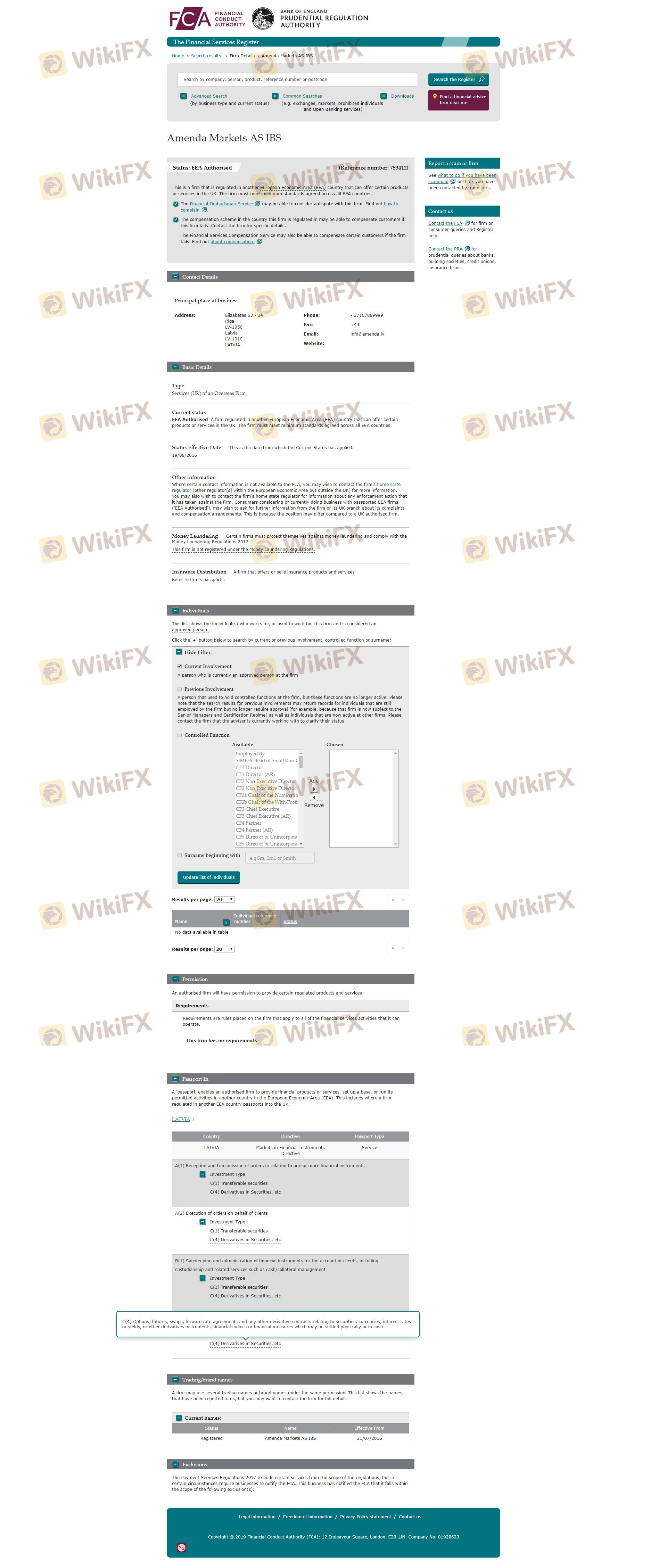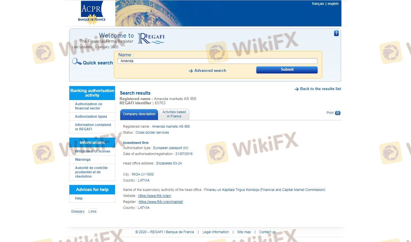 The regulatory status of a broker is a fundamental aspect that determines its legitimacy and safety. Amenda claims to be regulated by the Financial and Capital Market Commission (FCMC) of Latvia and has also obtained licenses from other regulatory bodies. Below is a summary of the core regulatory information related to Amenda:
