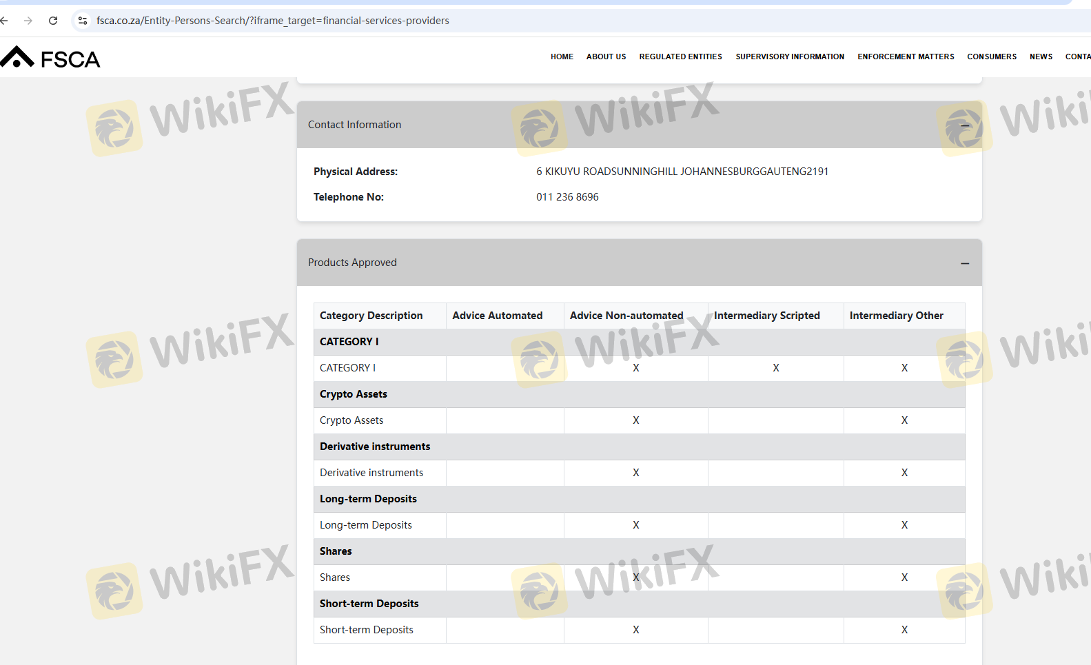 | South African Financial Sector Conduct Authority (FSCA) | 654321 | South Africa | Verified |
