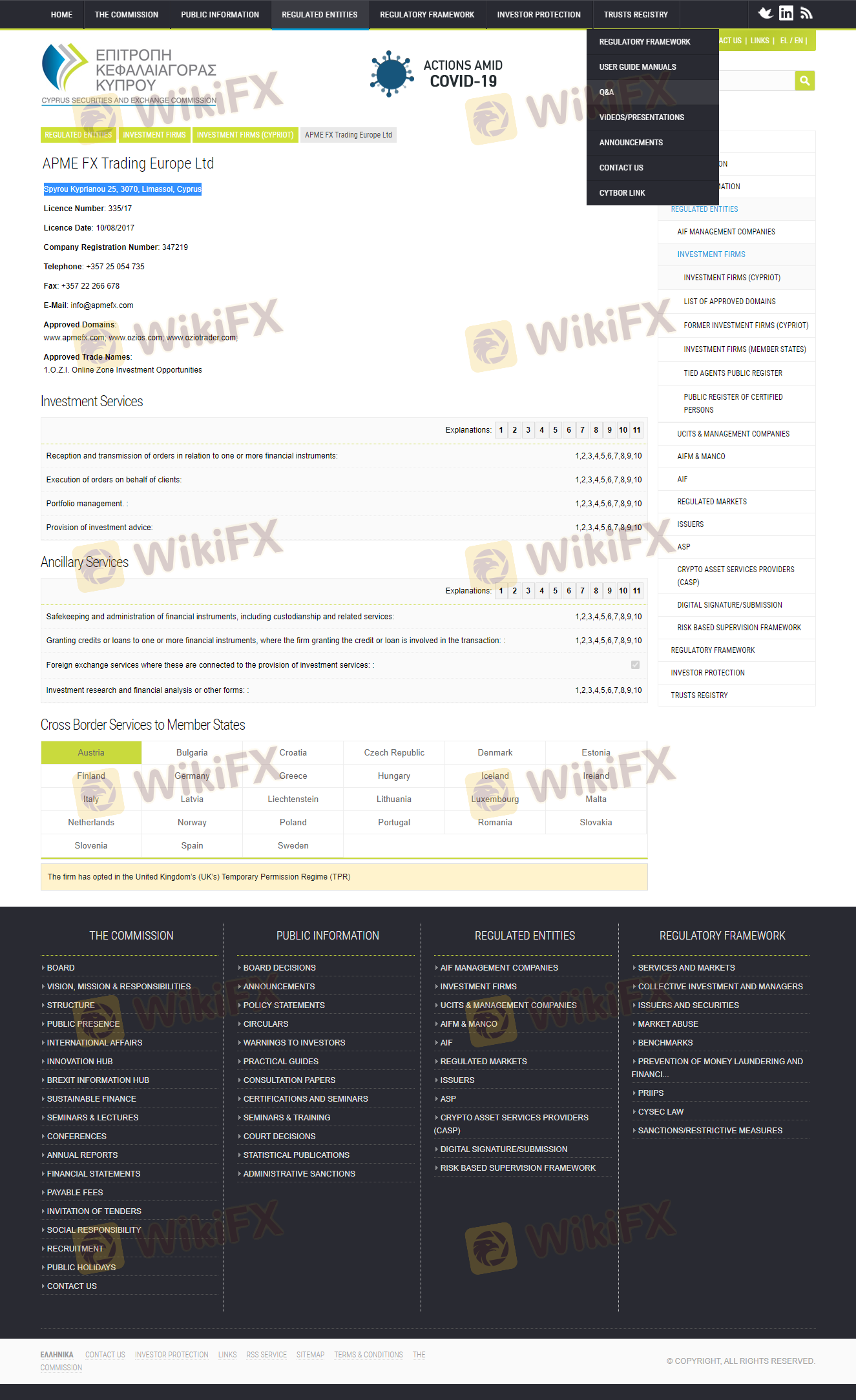 | Cyprus Securities and Exchange Commission (CySEC) | 335/17 | Cyprus | Verified |