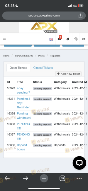 Analyzing customer feedback is essential in understanding a broker's reliability. APX Prime has received mixed reviews from users, with several complaints focusing on withdrawal delays and unresponsive customer service. Common complaint types include: