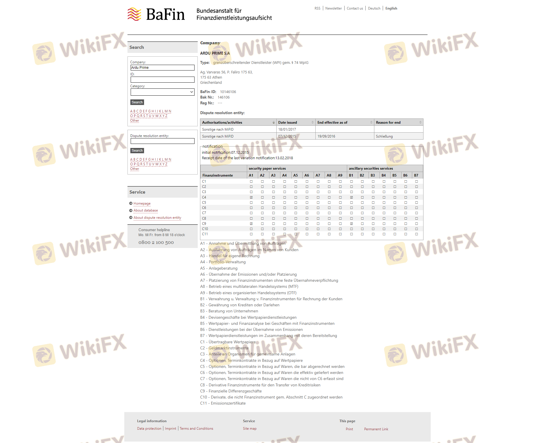 Regarding the legitimacy of Ardu Prime forex brokers, it provides BaFin, FCA and WikiBit, .