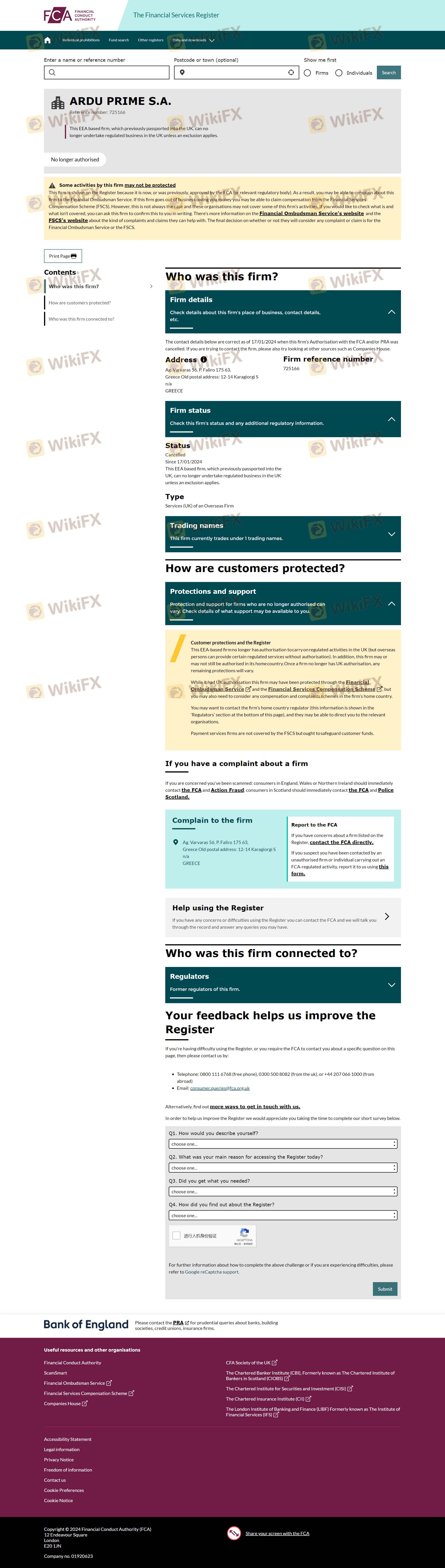 The HCMC is a lesser-known regulatory body compared to the FCA and BaFin, which are recognized globally for their stringent regulatory frameworks. While Ardu Prime is under the supervision of these authorities, the temporary permission from the FCA raises some concerns, as it indicates that the broker is not fully authorized to operate in the UK market. Furthermore, the lack of a Tier-1 regulatory license may suggest that the broker does not face the same level of scrutiny as those under more established regulators. Overall, while Ardu Prime is regulated, the quality of oversight and its temporary status in the UK should prompt caution among potential clients.