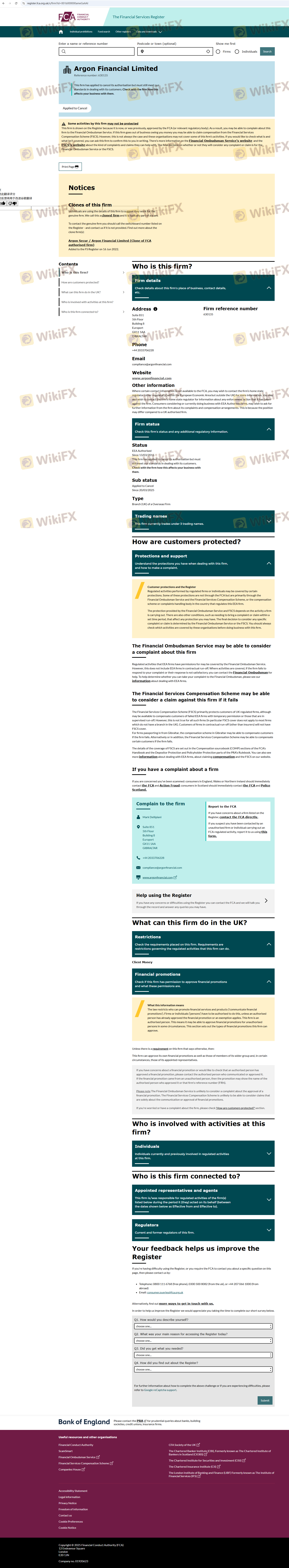 Regarding the legitimacy of Argon Financial forex brokers, it provides FCA and WikiBit, .