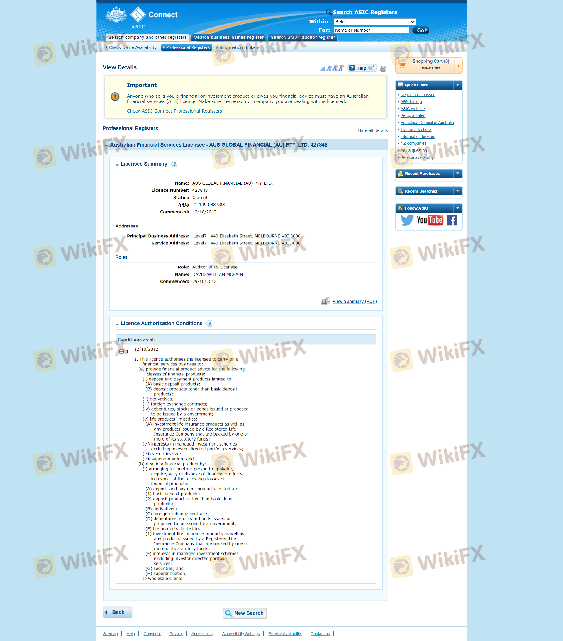 Regarding the legitimacy of AUS GLOBAL forex brokers, it provides CYSEC, ASIC, FSCA, SCA and WikiBit, .