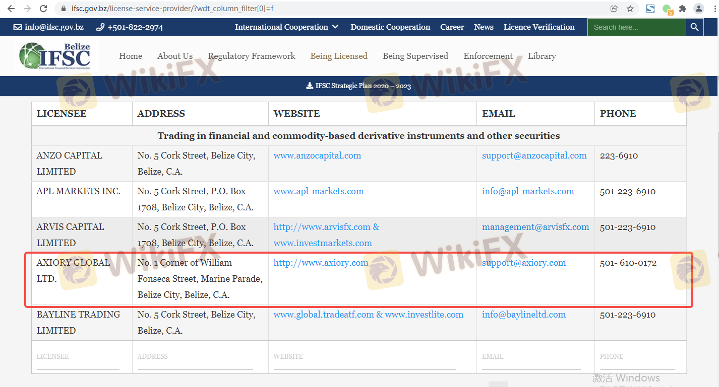 The regulatory environment in which a broker operates is a key indicator of its legitimacy and reliability. Axiory is regulated by the International Financial Services Commission (IFSC) of Belize and the Financial Services Commission (FSC) of Mauritius. Below is a summary of Axiory's regulatory information: