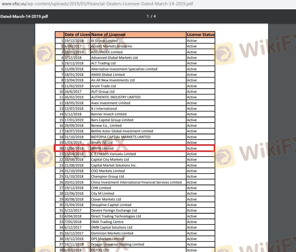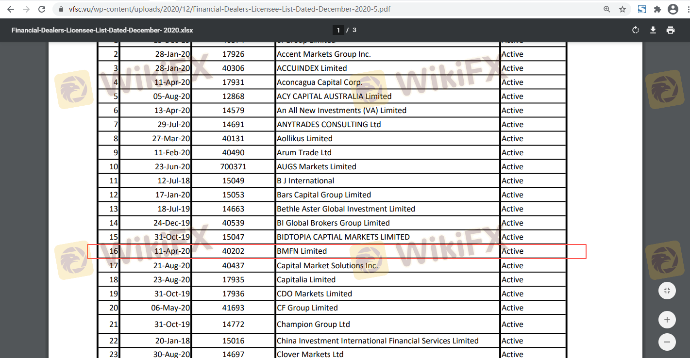 Understanding a broker's regulatory framework is crucial for assessing its legitimacy. BMFN claims to be regulated by the Vanuatu Financial Services Commission (VFSC) and the Australian Securities and Investments Commission (ASIC). Regulation is essential as it imposes certain standards and practices that brokers must adhere to, thereby protecting traders' interests. Below is a summary of BMFN's regulatory information: