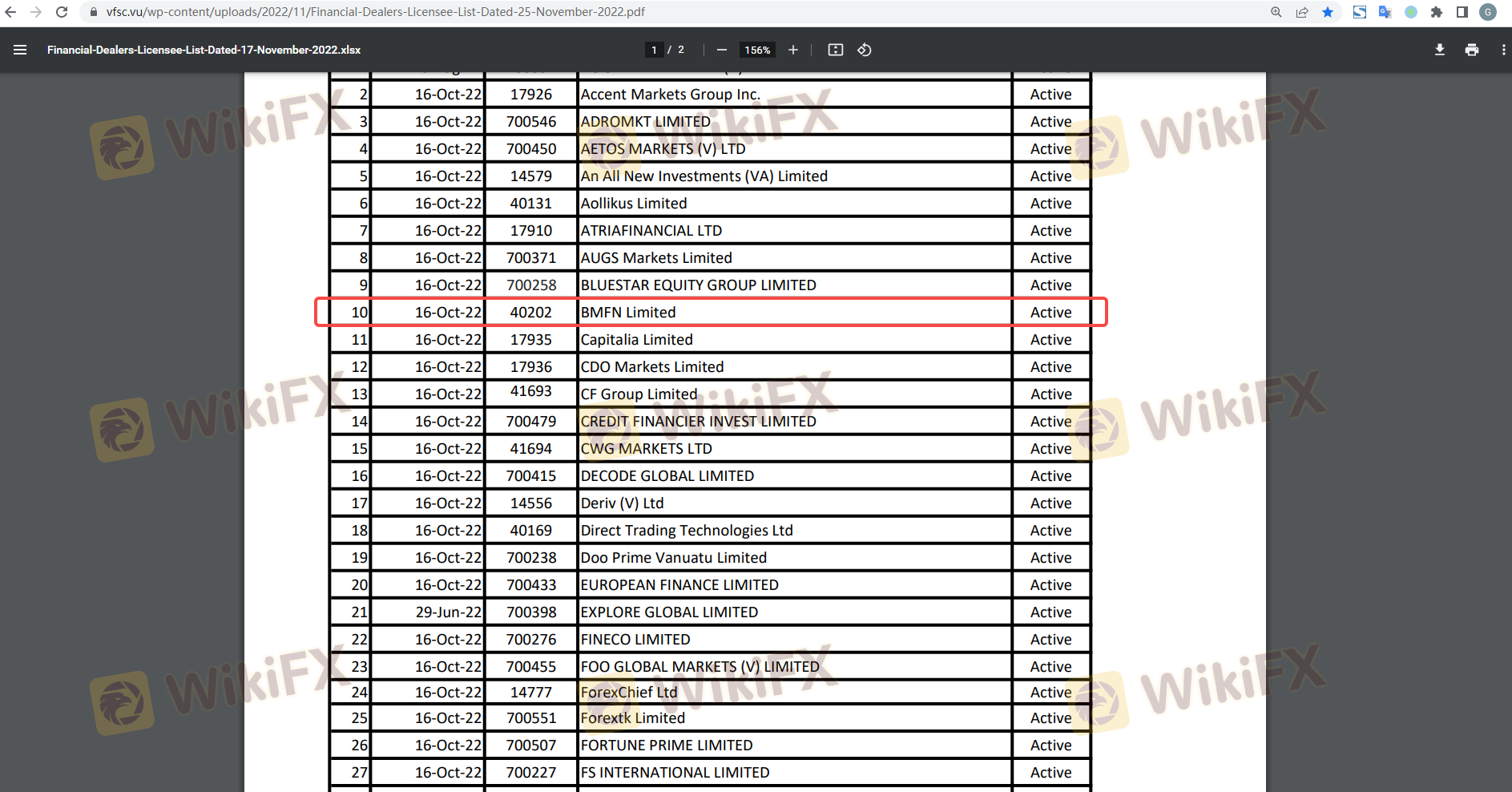 Regarding the legitimacy of BMFN forex brokers, it provides VFSC and WikiBit, .