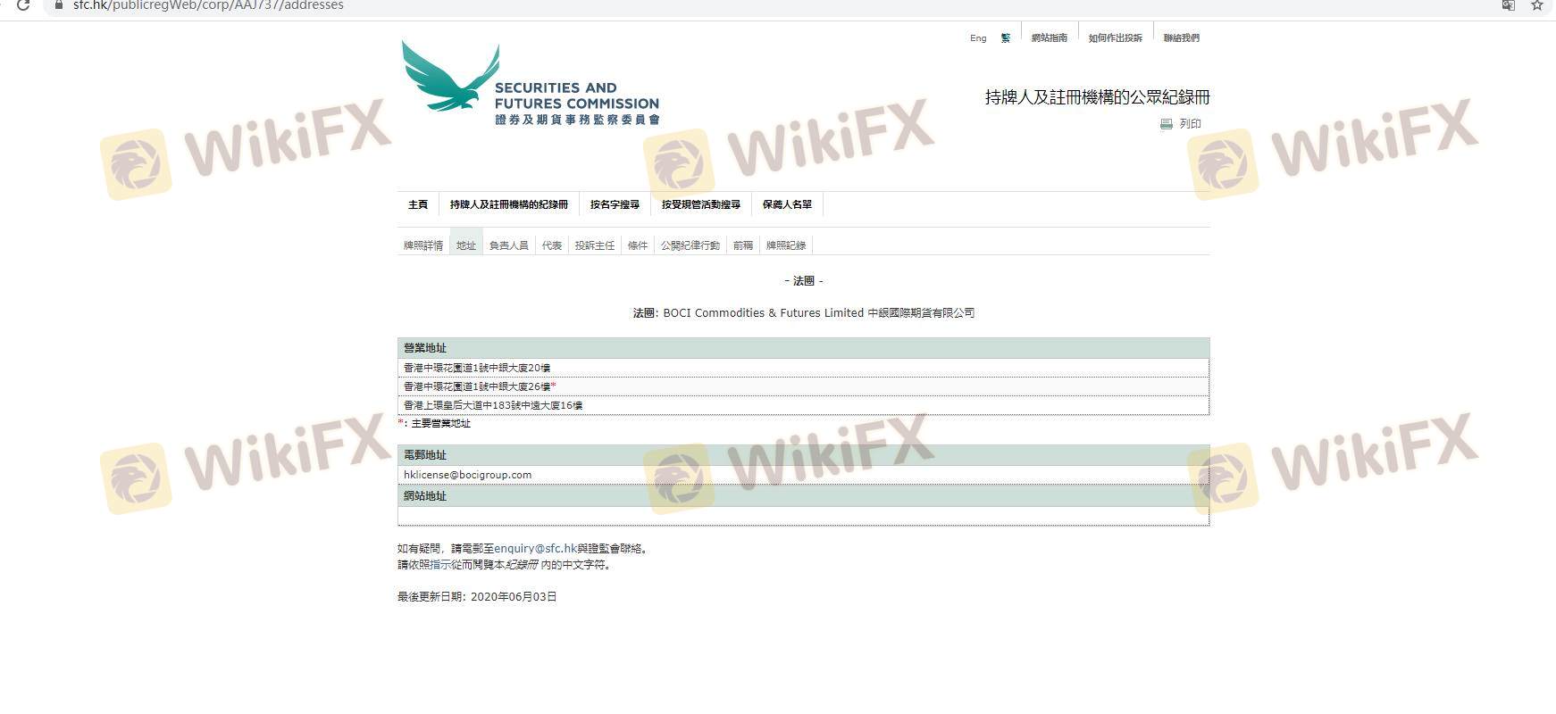 The regulatory environment is a fundamental aspect of evaluating any forex broker's credibility. BOCI is regulated by the Securities and Futures Commission (SFC) of Hong Kong, which is known for its stringent regulatory framework. This regulatory oversight is essential as it ensures that brokers adhere to specific standards and practices designed to protect investors. Below is a summary of BOCI's regulatory information: