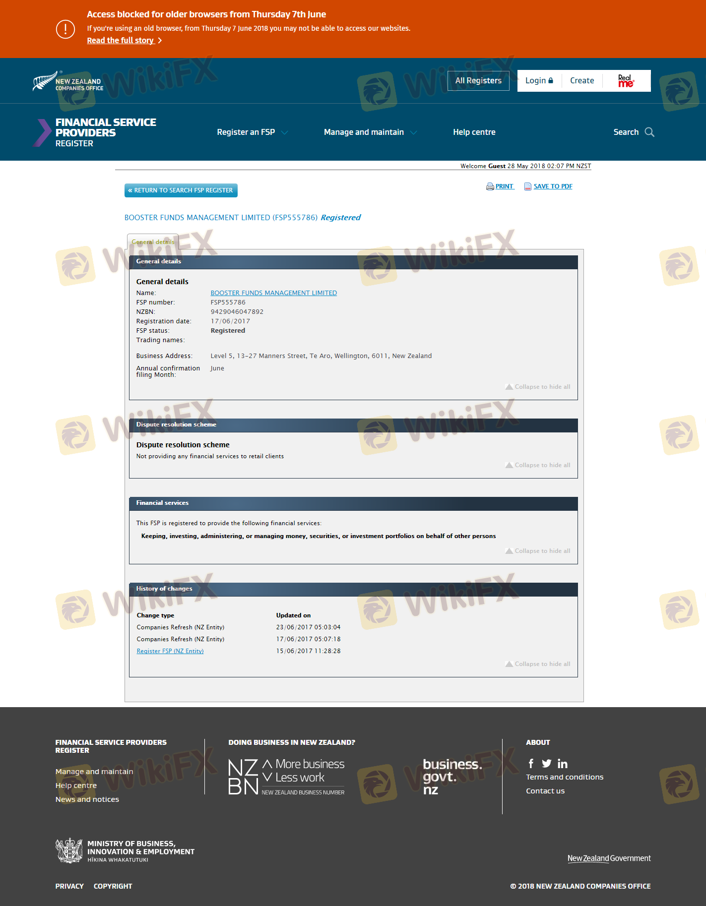 Regarding the legitimacy of BOOSTER FUNDS forex brokers, it provides FSPR and WikiBit, .