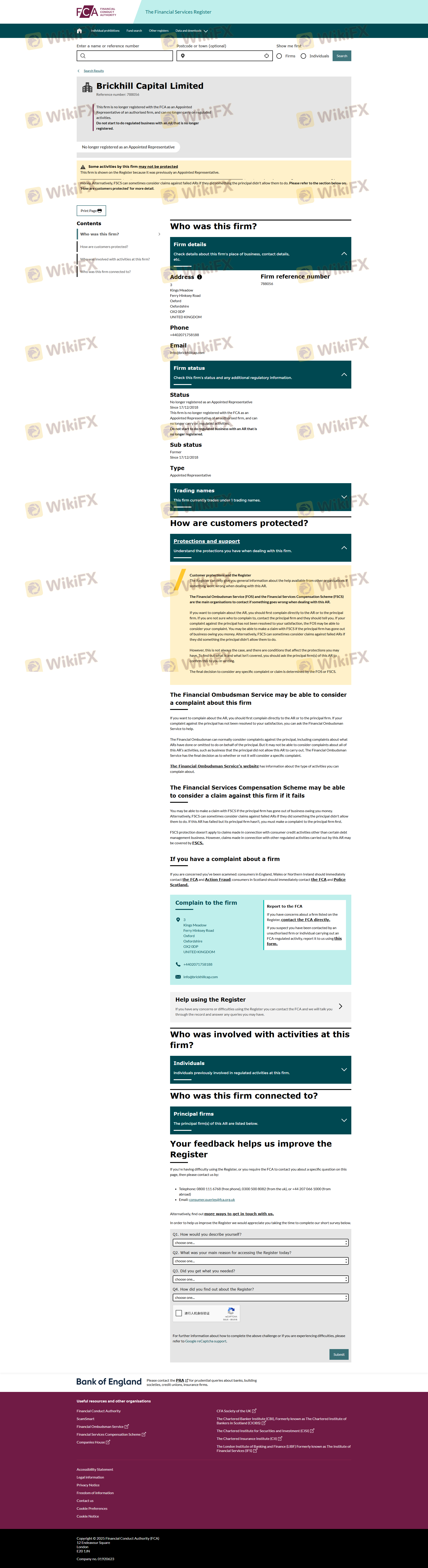 Regarding the legitimacy of Brickhill Capital forex brokers, it provides FCA, FSPR and WikiBit, (also has a graphic survey regarding security).