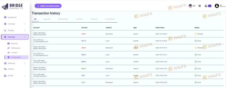 The trading platform offered by Bridge Markets is MetaTrader 5 (MT5), which is known for its advanced features and user-friendly interface. However, the platform's performance, including order execution quality and slippage rates, is crucial for traders. Reports of high slippage and rejected orders have surfaced, leading to concerns about the broker's execution reliability.