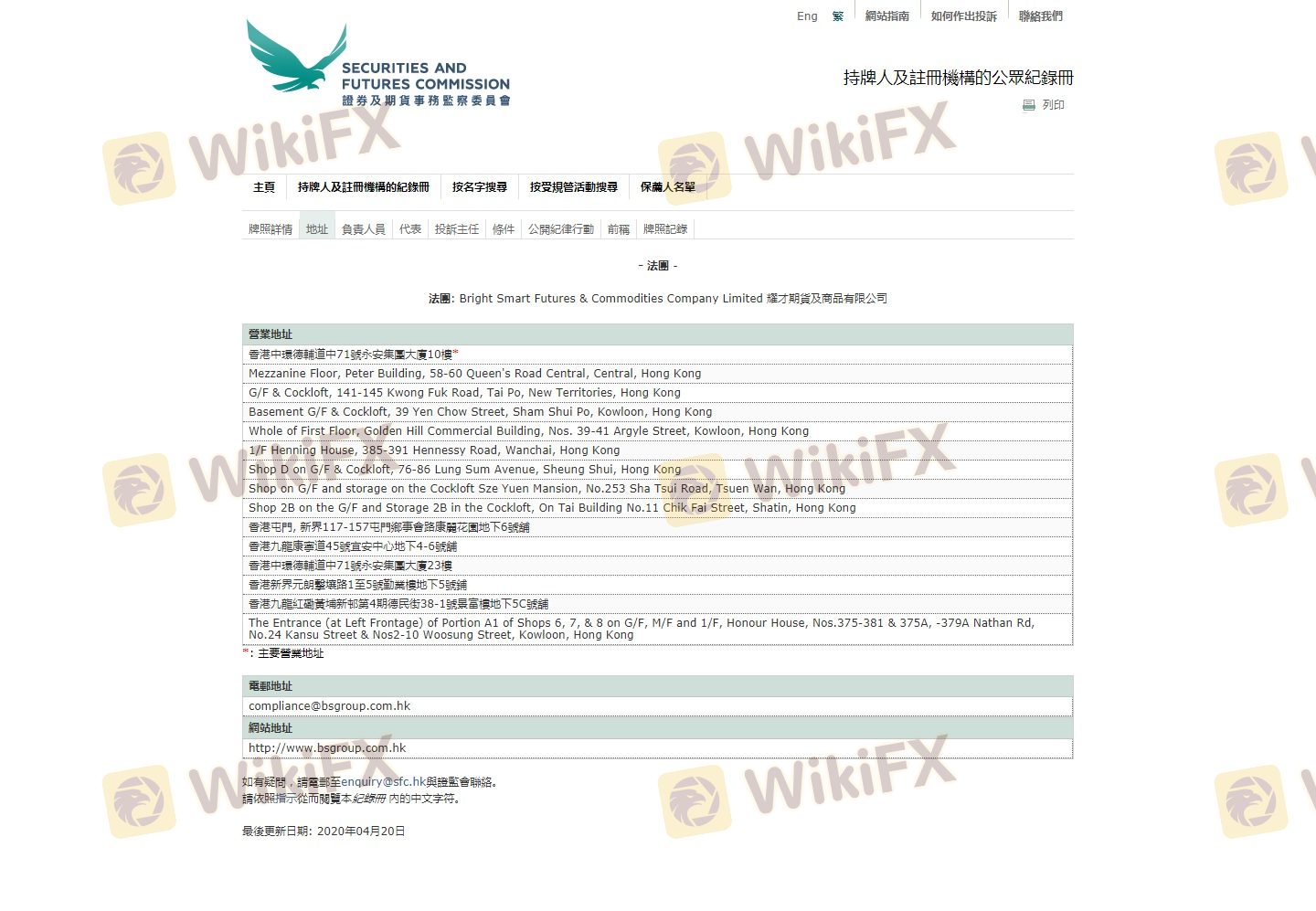 The regulatory status of a brokerage firm is crucial in determining its legitimacy and safety for traders. Bright is regulated by the Securities and Futures Commission (SFC) of Hong Kong, which is considered a reputable regulatory authority in the financial industry. The SFC enforces strict rules and regulations that brokers must adhere to, ensuring a level of protection for clients. Below is a summary of Bright's regulatory information: