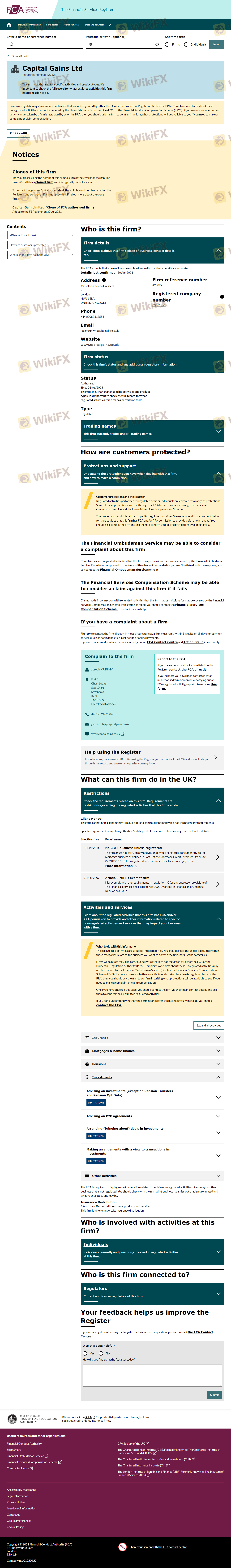 The absence of valid regulatory oversight is alarming, as it indicates that Capital Gain operates without the necessary legal framework to protect investors. This lack of regulation means that traders using this platform may have limited recourse in the event of disputes or fraud. Moreover, the FCA has previously flagged Capital Gain Ltd as a fraudulent entity, further emphasizing the need for caution.