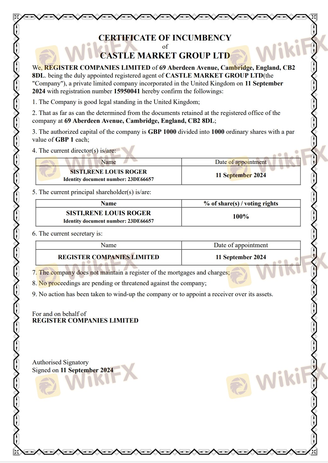 The regulatory status of a broker is a critical factor that can significantly affect a trader's experience and safety. Castle Market claims to operate under a license issued by the MISA (Ministry of Investment and Strategic Affairs) in Comoros, but it lacks regulation from more reputable financial authorities such as the FCA or NFA. The absence of stringent regulatory oversight raises red flags about the broker's legitimacy.