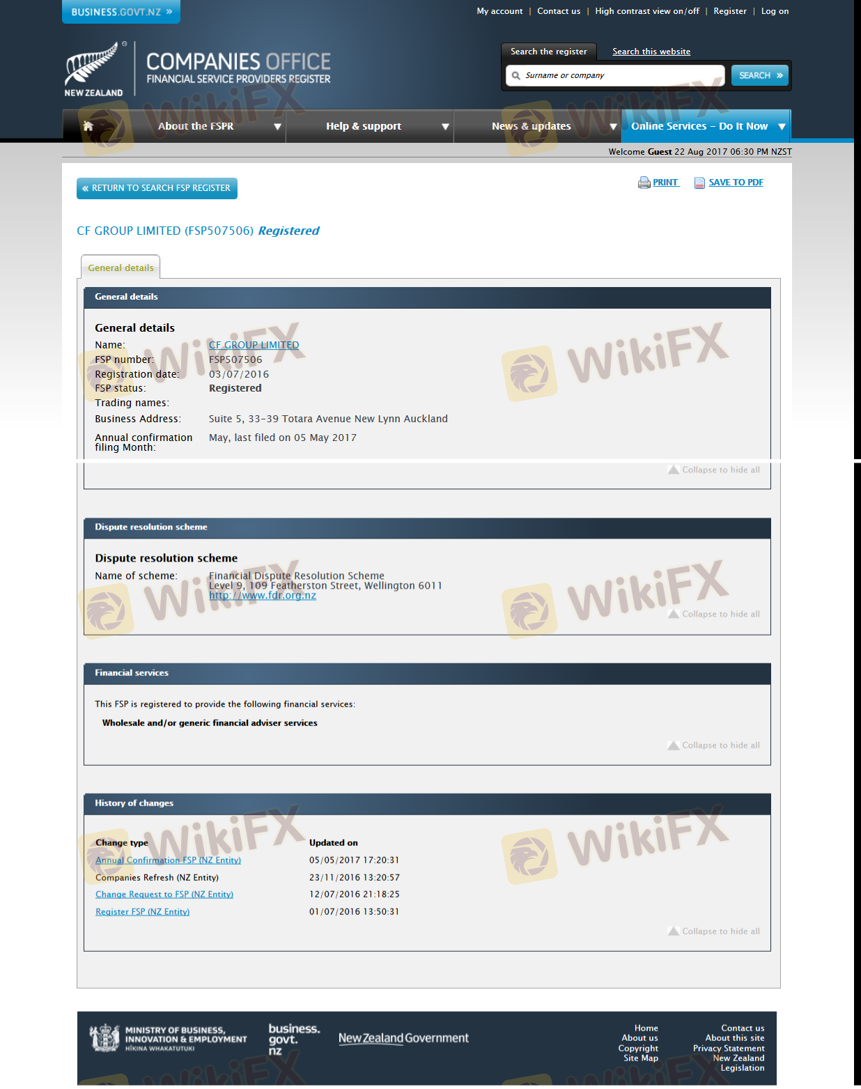 CF Group was reportedly founded in 2018 and claims to have substantial experience in the forex market. However, the absence of verifiable information regarding its ownership structure and management team raises questions about its transparency. The company operates multiple subsidiaries, including CF Global UK Limited and CF Group Limited in New Zealand. However, it appears that these entities are not genuinely affiliated with CF Group, as they have faced regulatory issues themselves.