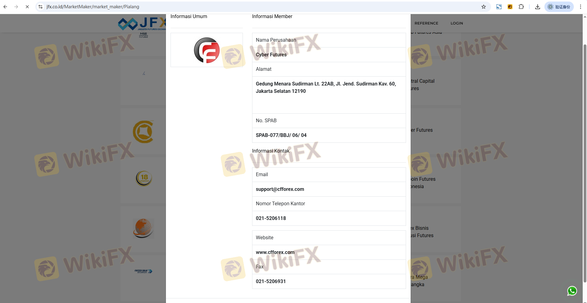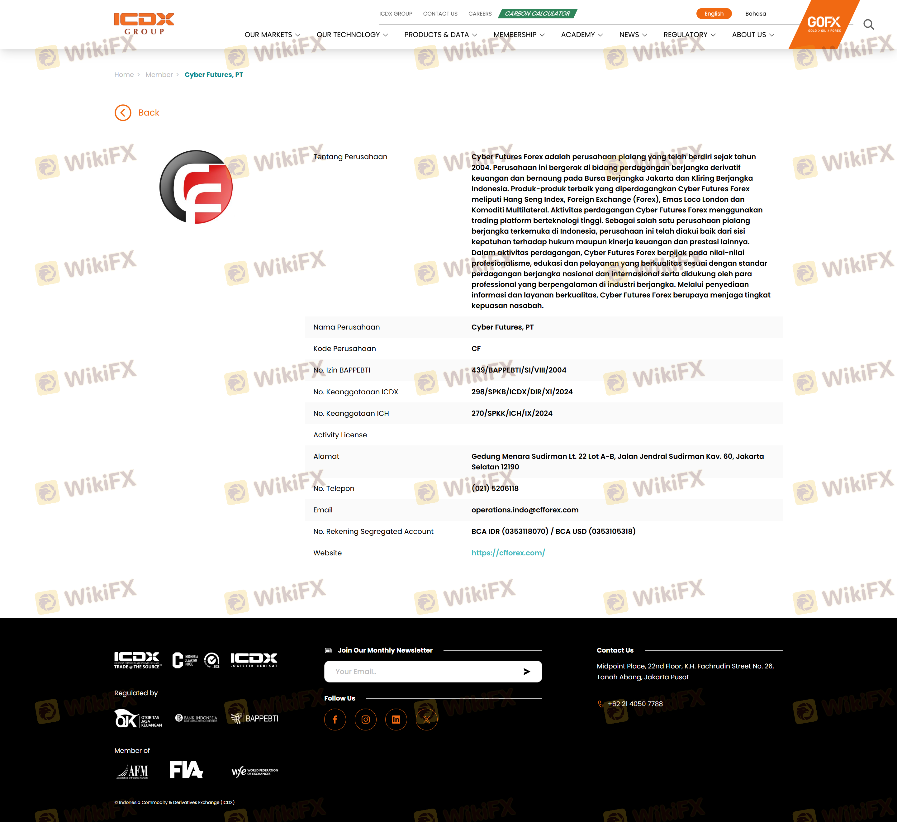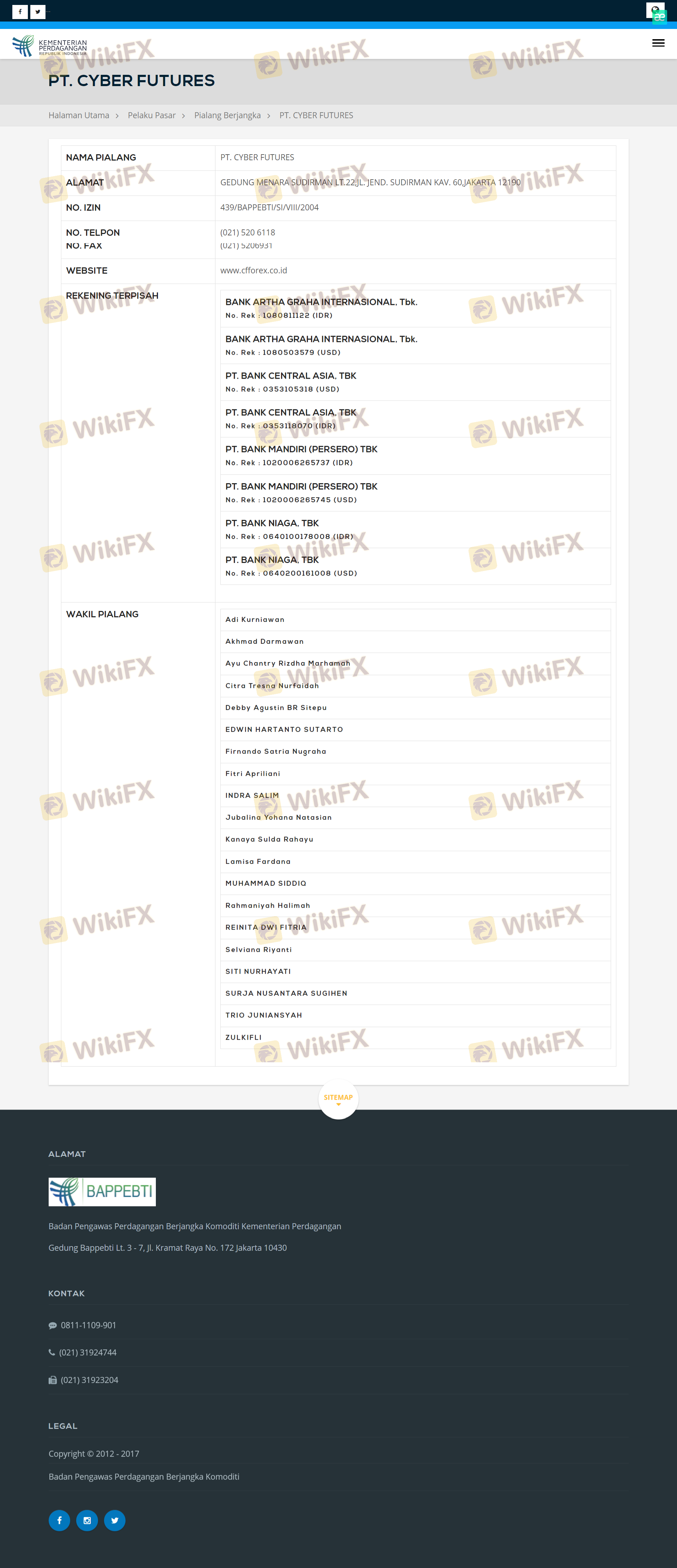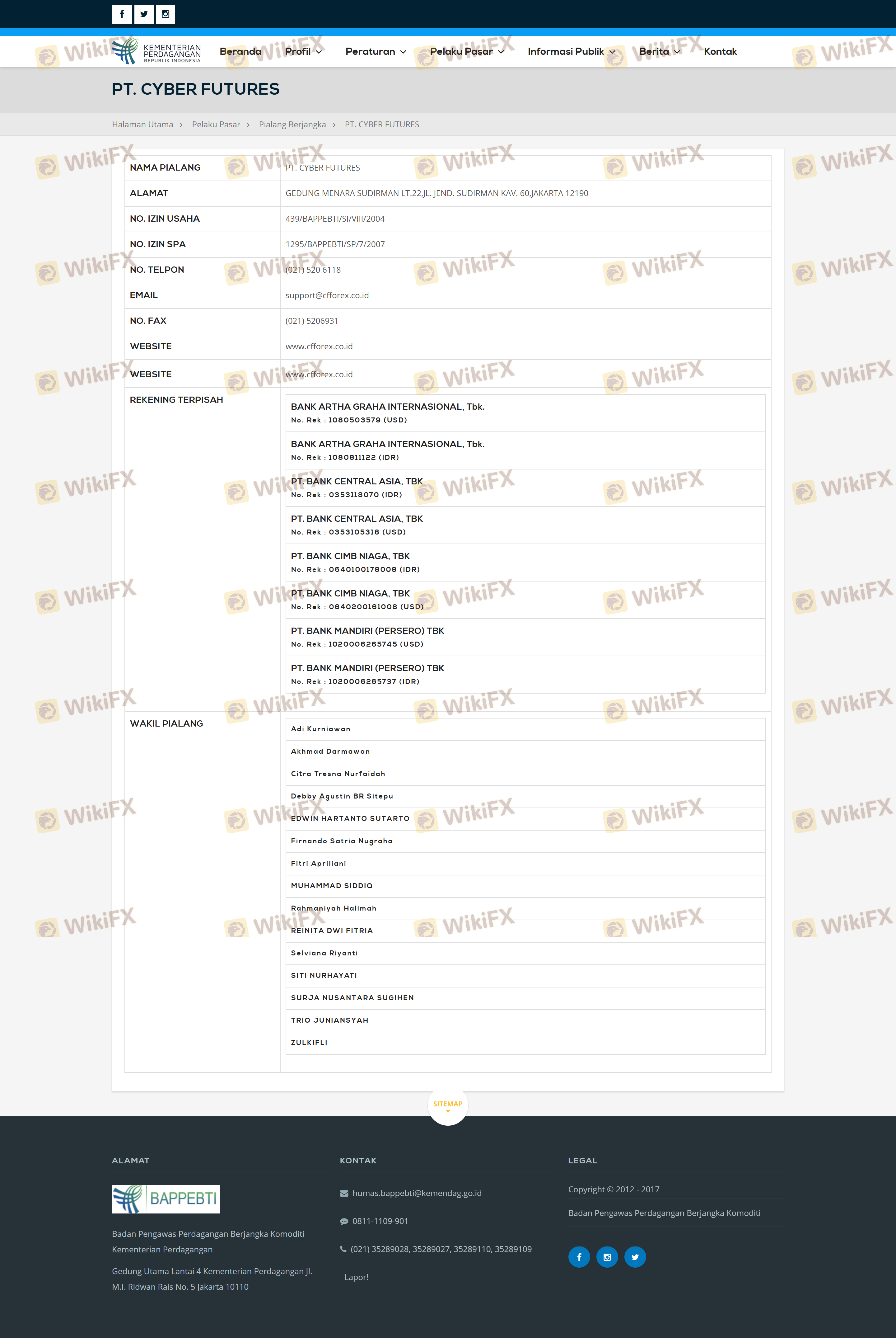 CFForex was founded in 2004 and has established itself as a broker in the Indonesian market. The company is owned by PT Cyber Futures, which has been involved in trading financial derivatives. However, the lack of detailed information regarding its ownership structure and management team raises concerns about transparency. The management teams qualifications and experience in the financial industry are crucial indicators of the broker's reliability. Unfortunately, there is limited publicly available information about the team, which may hinder potential clients from making informed decisions.