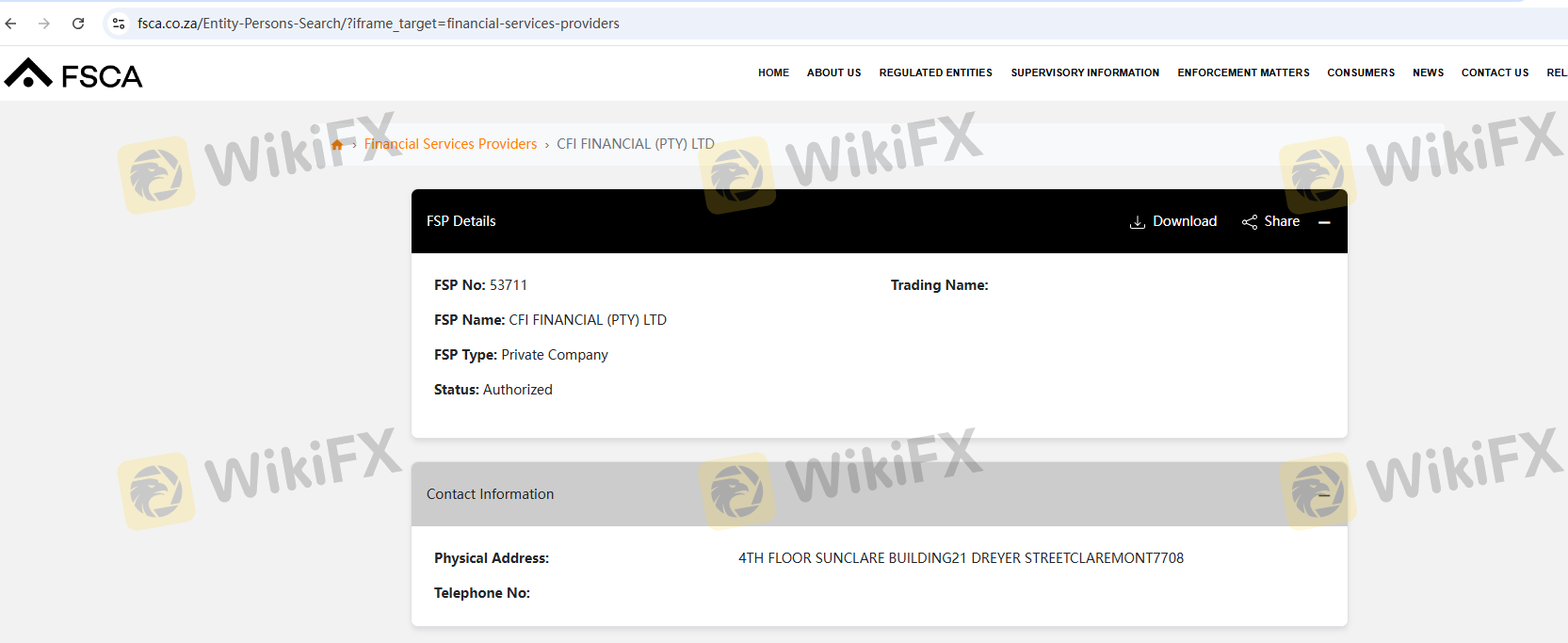 Regarding the legitimacy of CFI forex brokers, it provides CYSEC, FCA, CMA, DFSA, FSCA, VFSC, FSA and WikiBit, (also has a graphic survey regarding security).