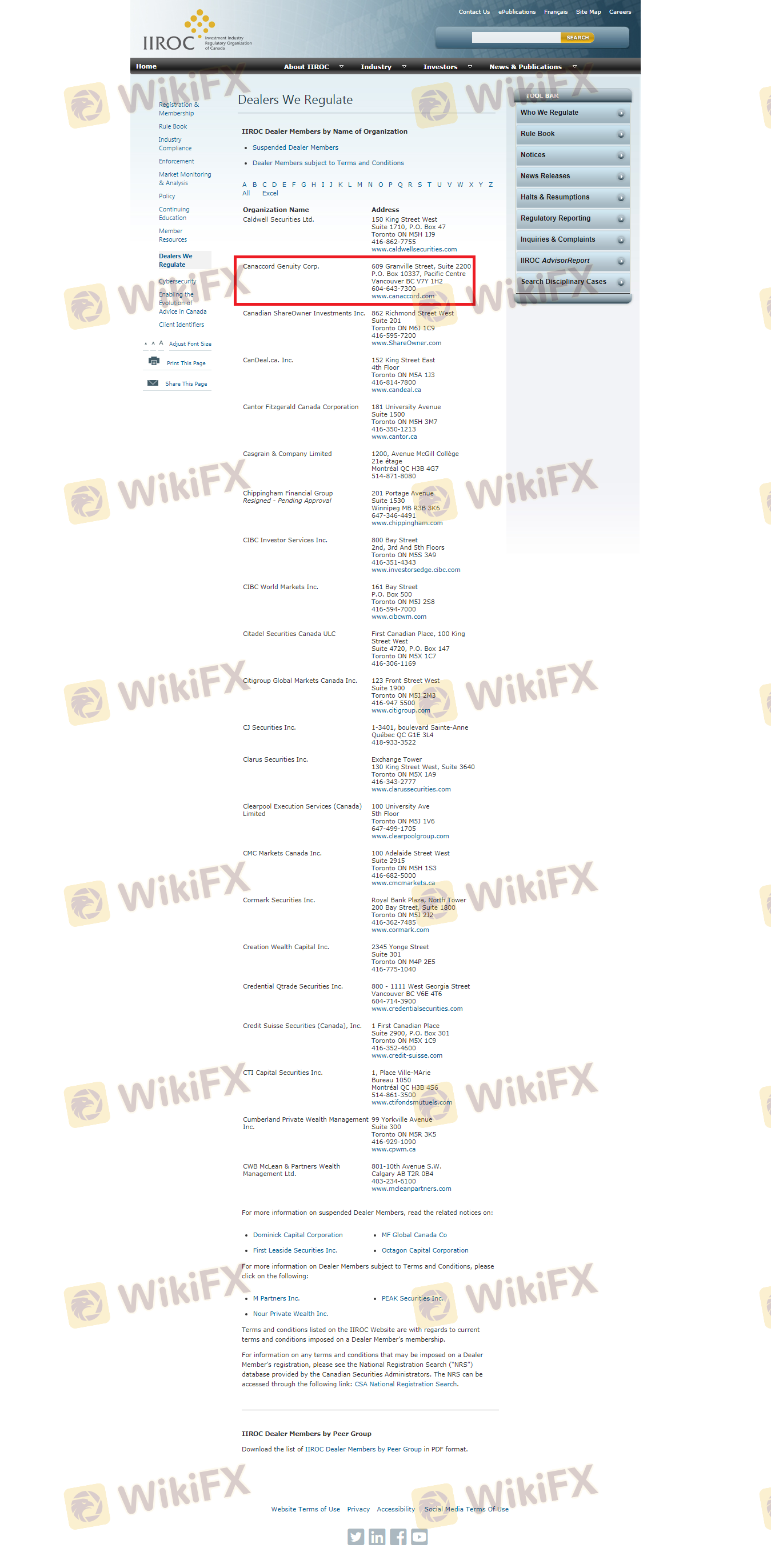 | IIROC | Not specified | Canada | Verified |