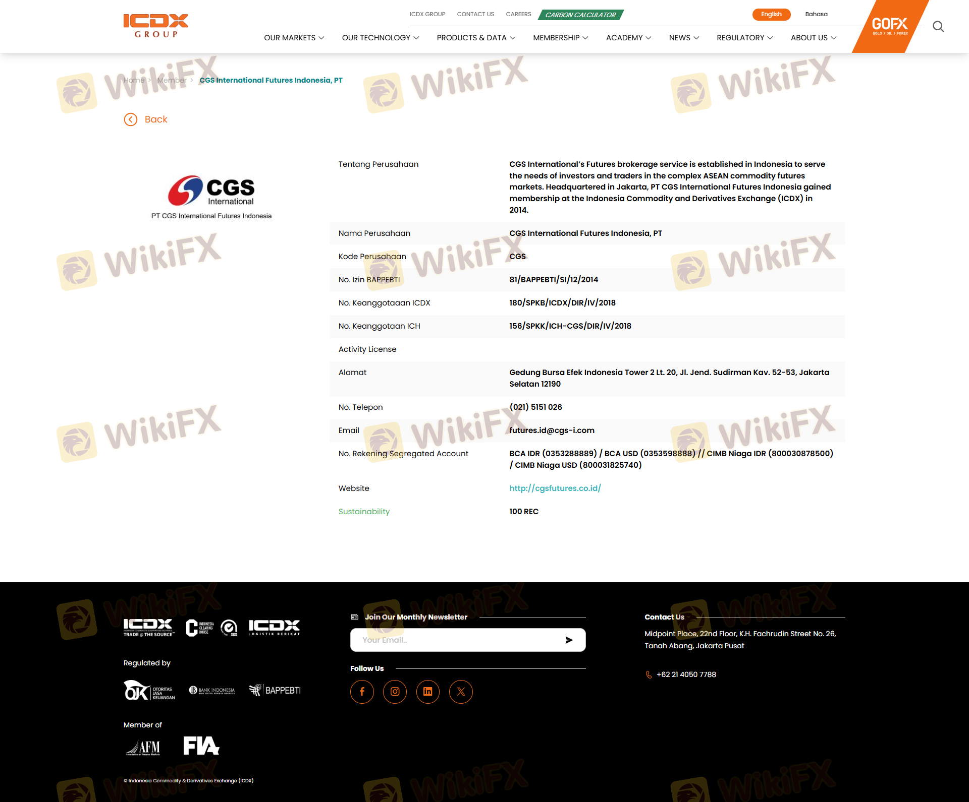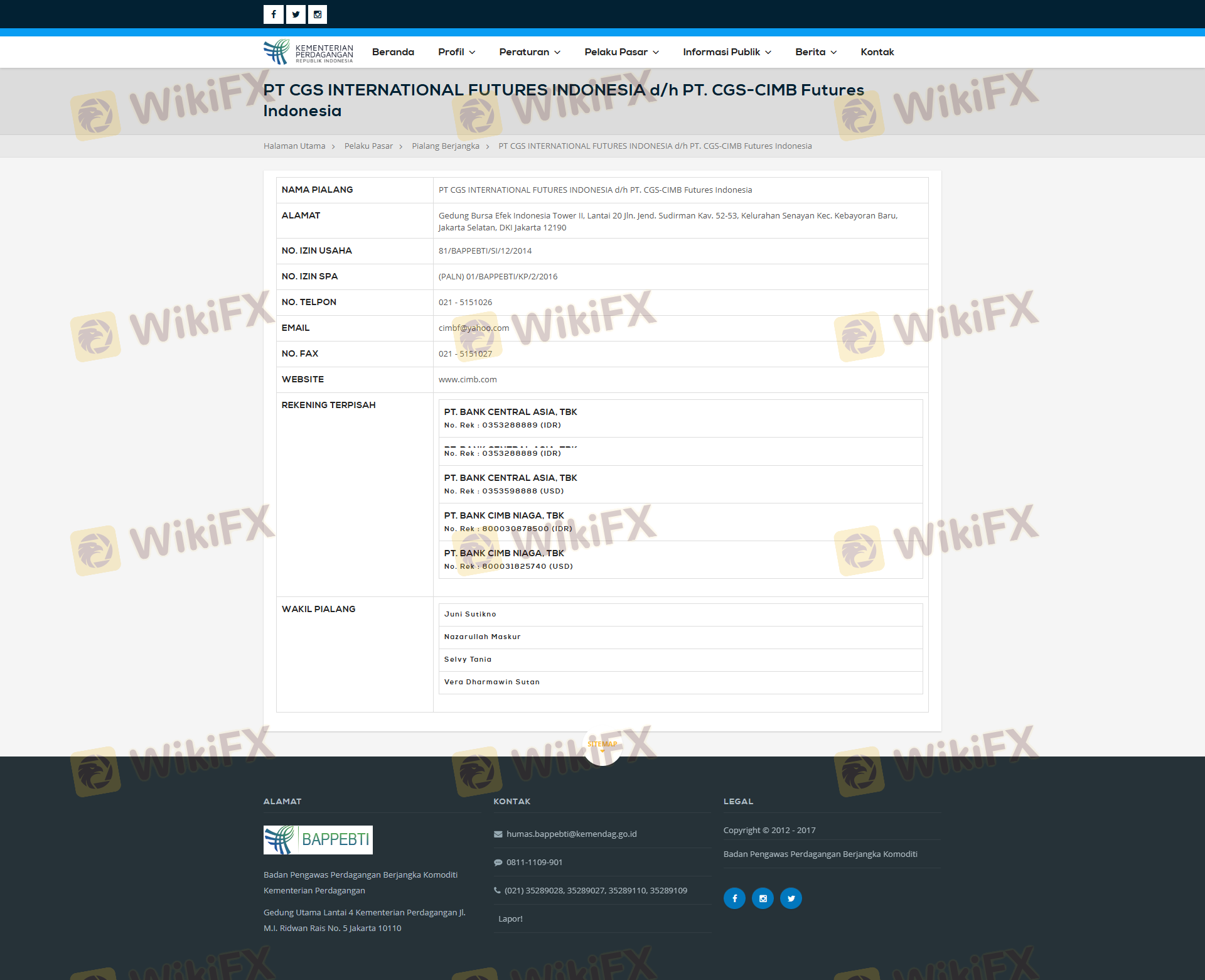 Regarding the legitimacy of CGS International forex brokers, it provides BAPPEBTI, ICDX, MAS and WikiBit, (also has a graphic survey regarding security).