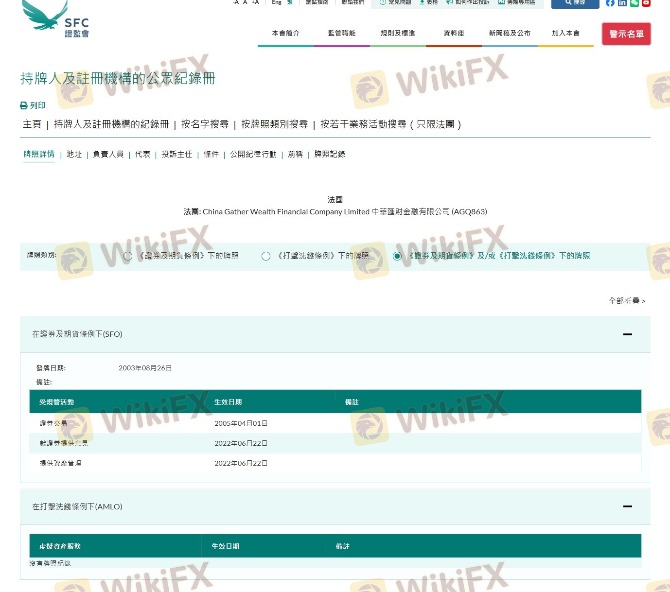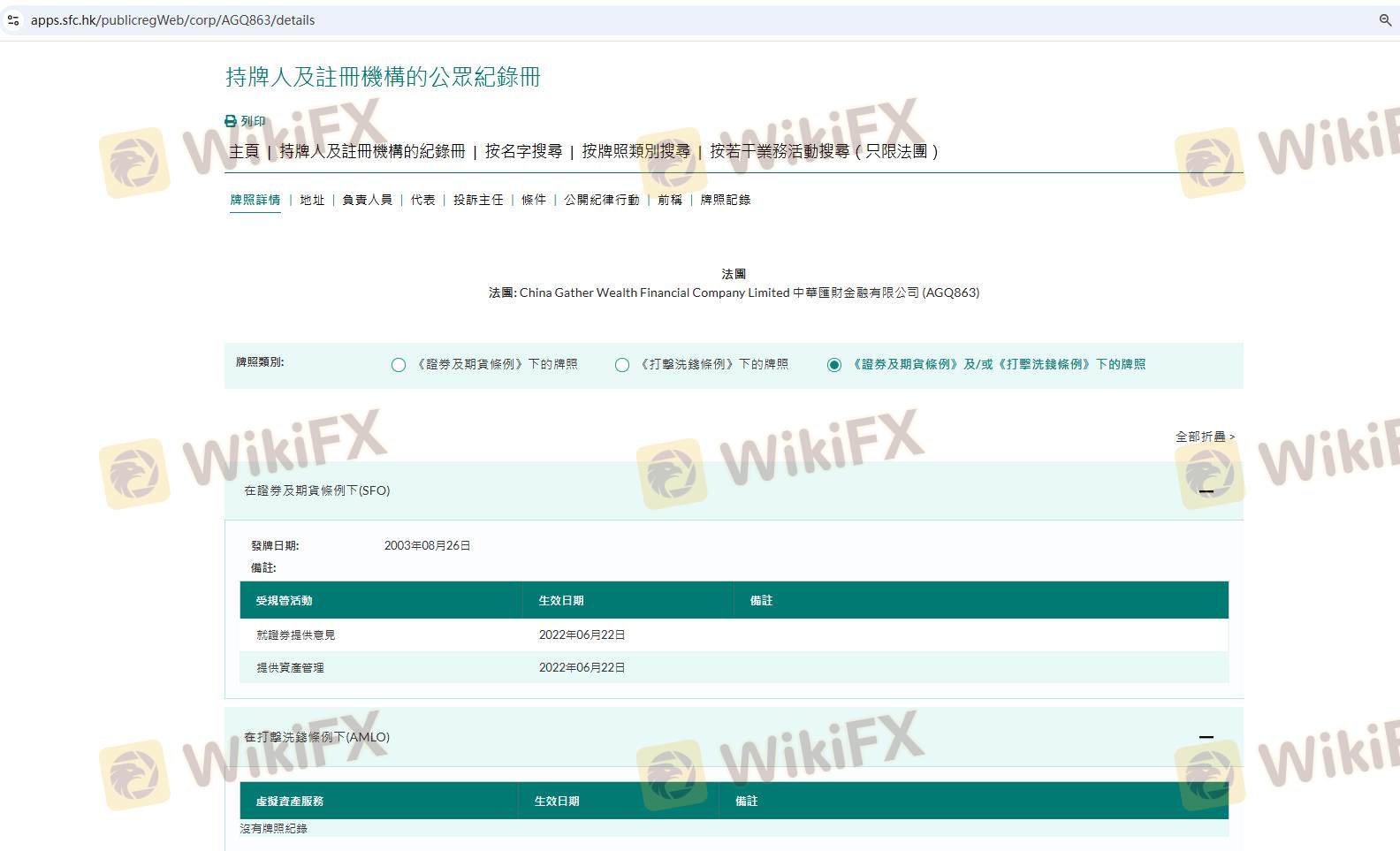 Regarding the legitimacy of China Gather Wealth forex brokers, it provides SFC and WikiBit, (also has a graphic survey regarding security).