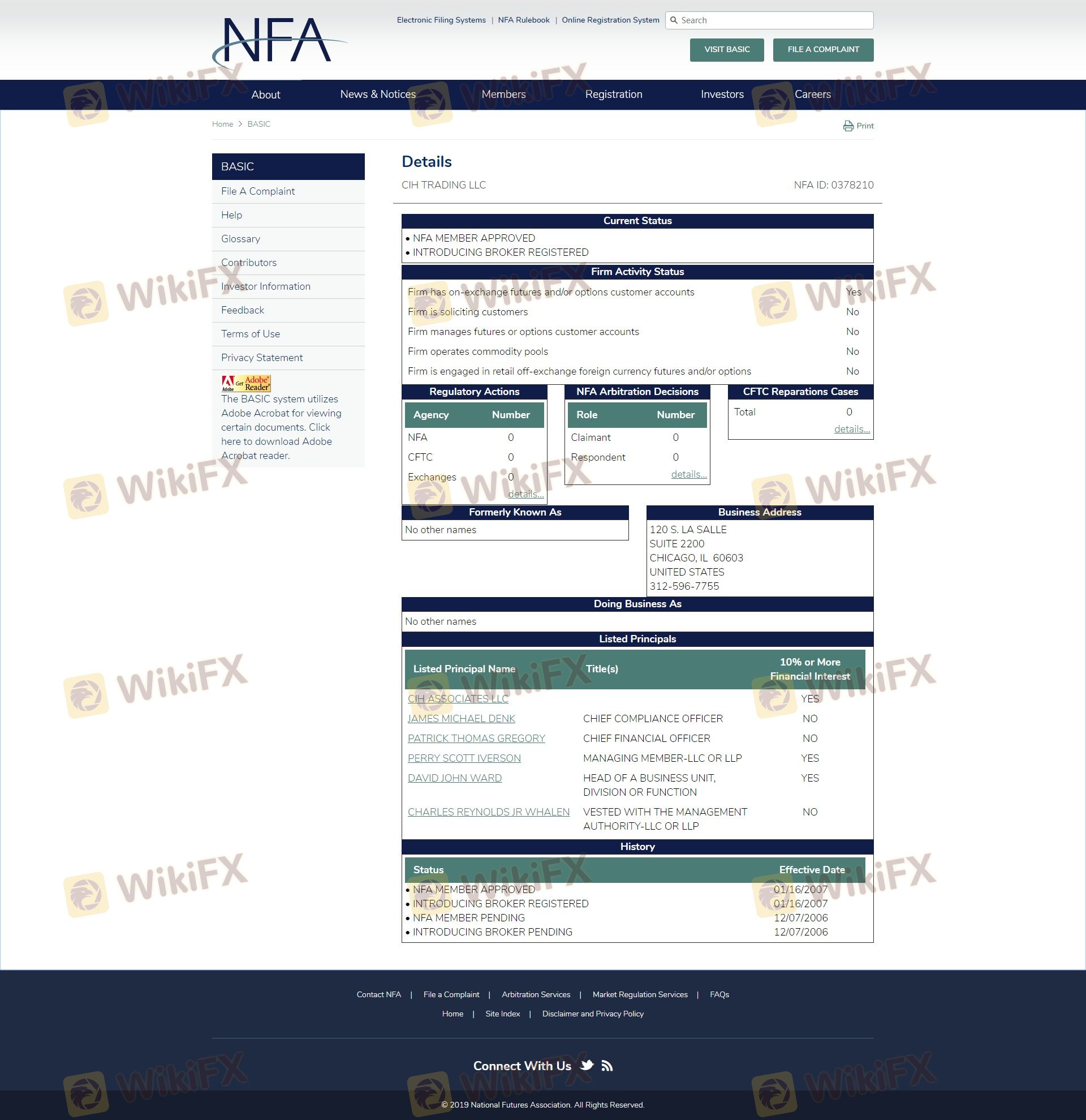 Regarding the legitimacy of CIH Trading forex brokers, it provides NFA and WikiBit, .