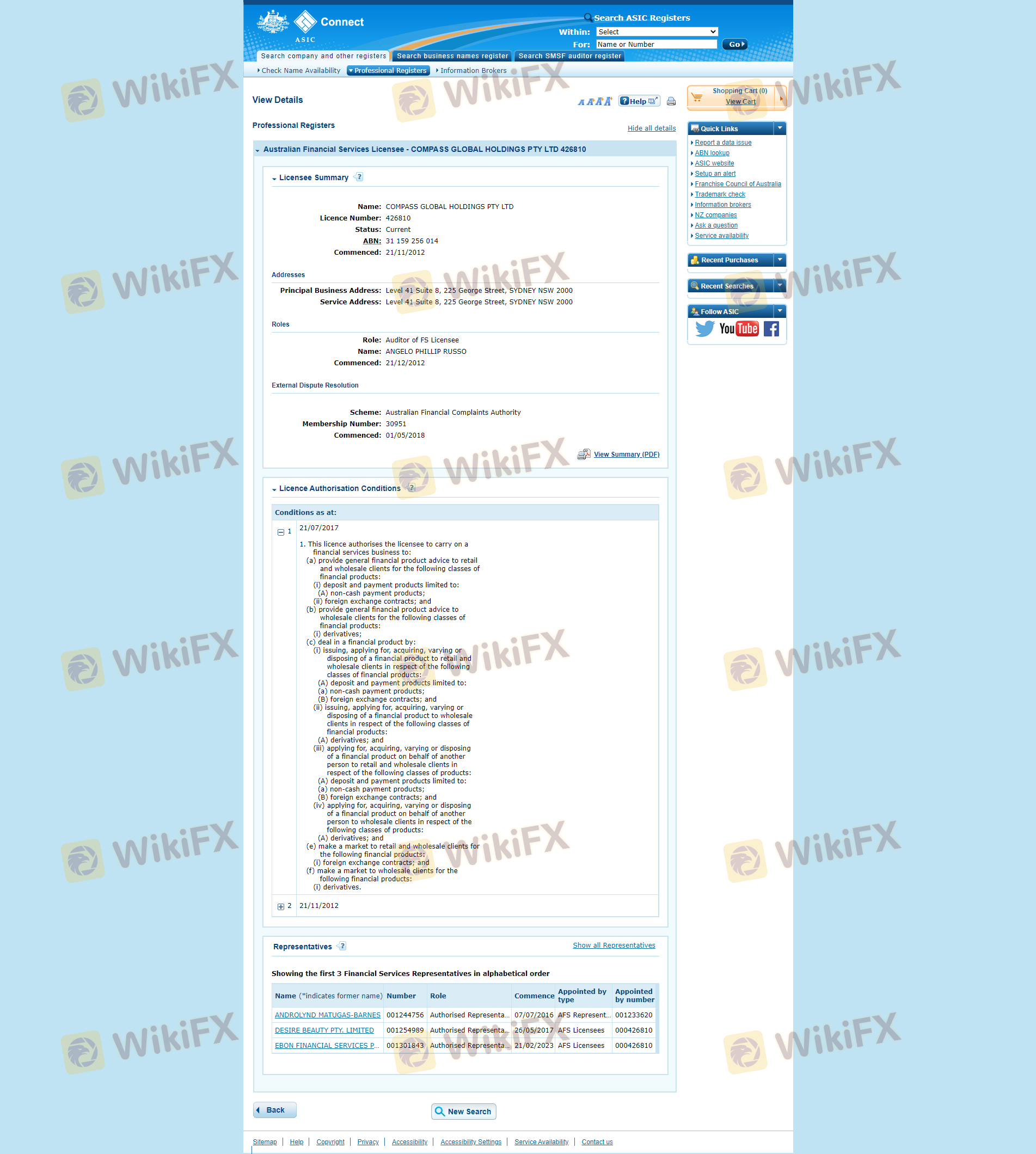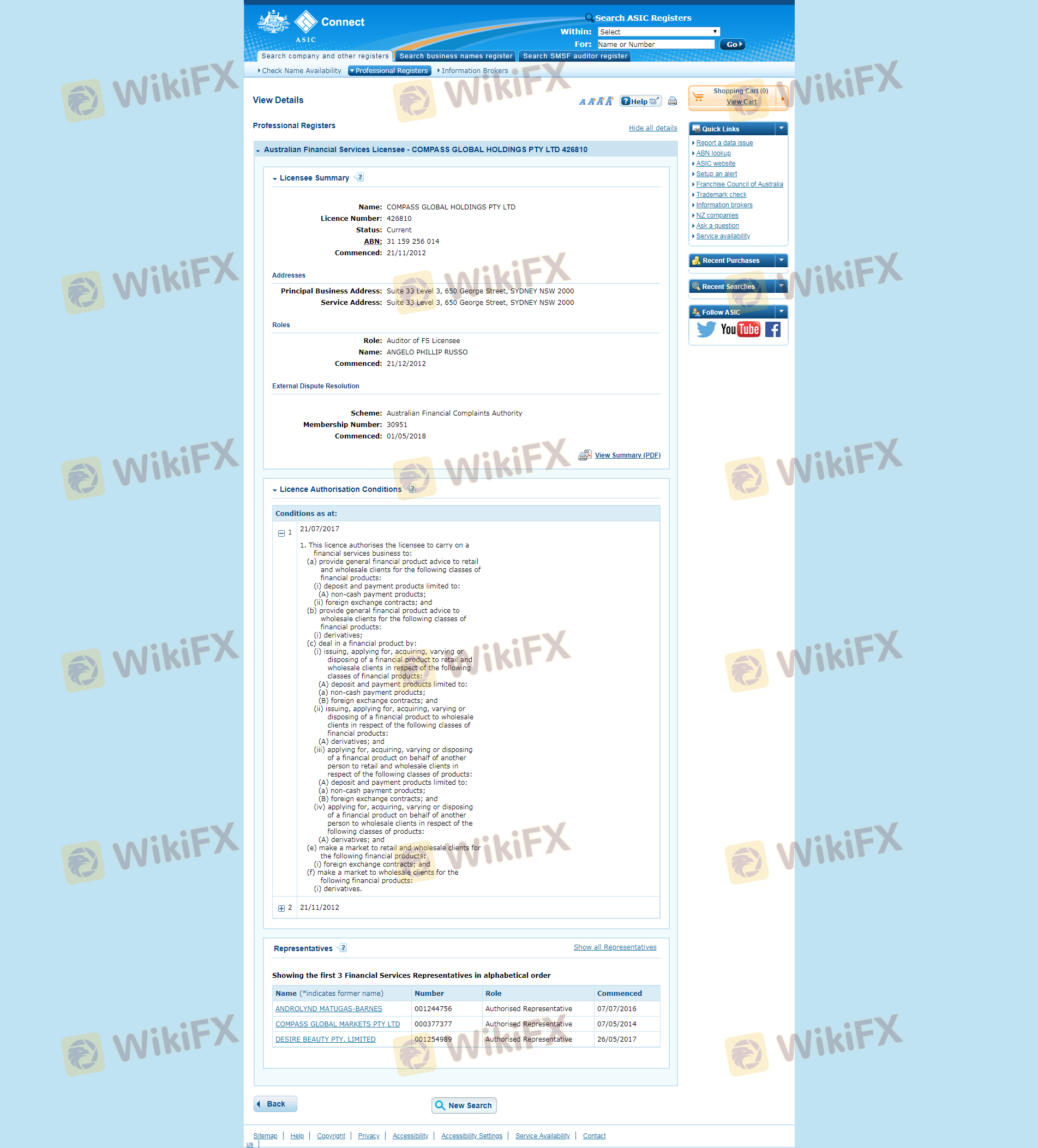 The regulatory environment in which a broker operates is a critical factor in determining its legitimacy. Compass Markets is regulated by the Australian Securities and Investments Commission (ASIC), a reputable financial authority known for its stringent oversight of financial services in Australia. Below is a summary of Compass Markets' regulatory information: