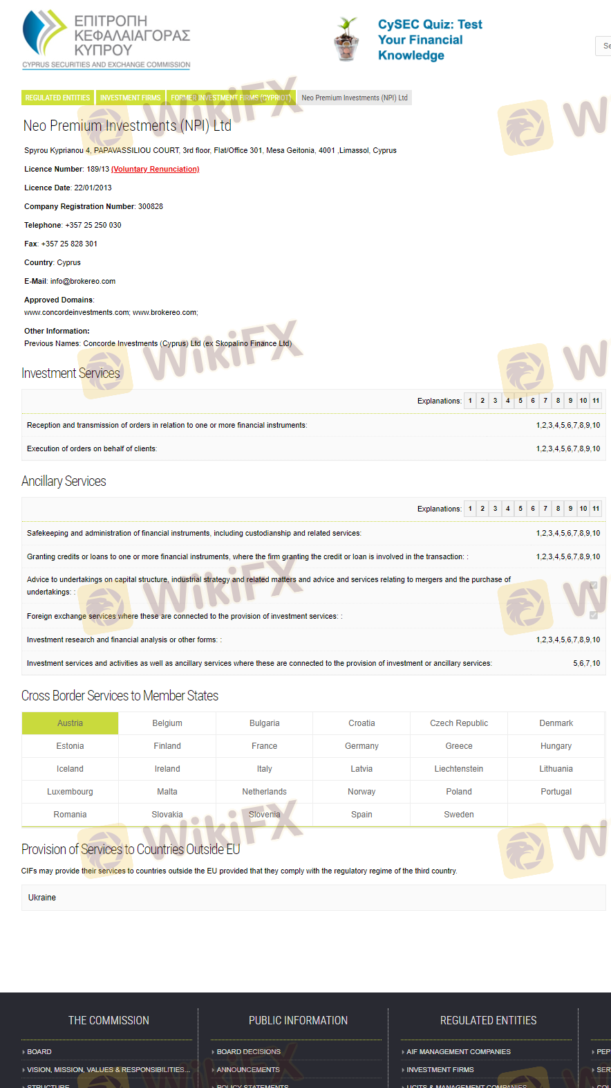 Regarding the legitimacy of Concorde Investments forex brokers, it provides CYSEC and WikiBit, (also has a graphic survey regarding security).