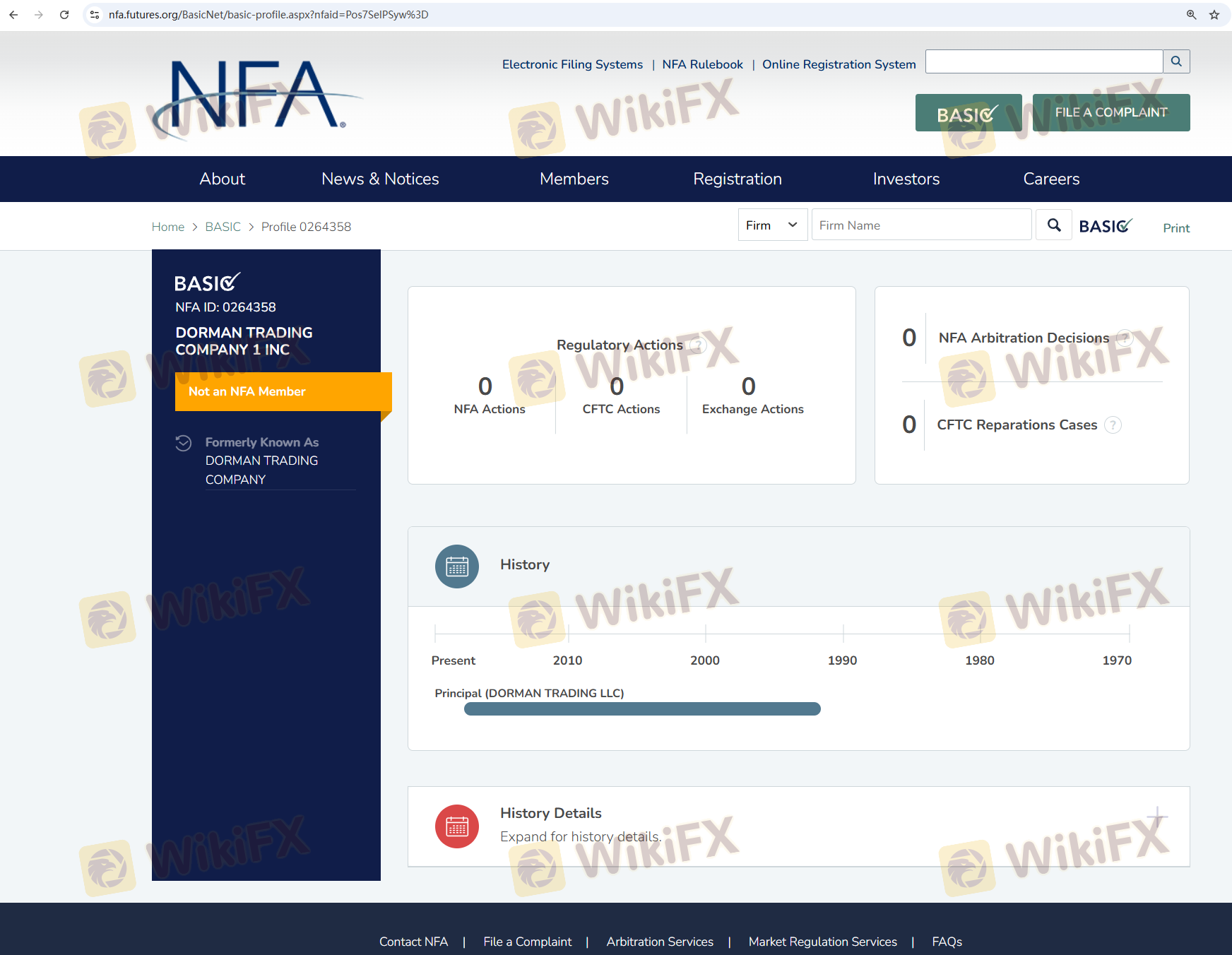 The regulatory environment in which a broker operates is fundamental to its legitimacy and the safety of client funds. Dorman Trading claims affiliation with the National Futures Association (NFA), a key regulatory body in the United States. However, recent reports have raised concerns about the authenticity of this affiliation, categorizing it as a "suspicious clone." Below is a summary of Dorman Trading's regulatory information: