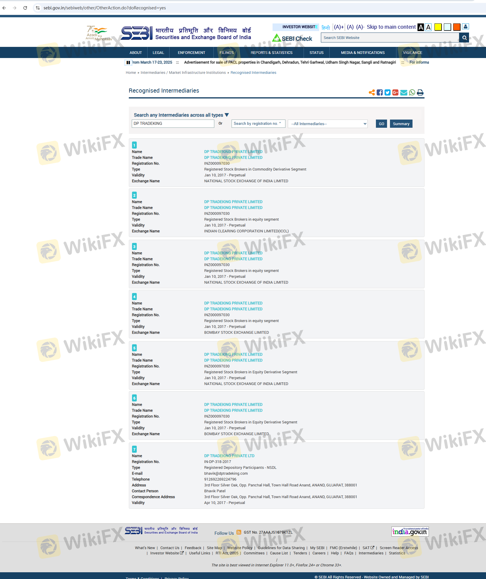 Regarding the legitimacy of DP TradeKING forex brokers, it provides SEBI and WikiBit, .