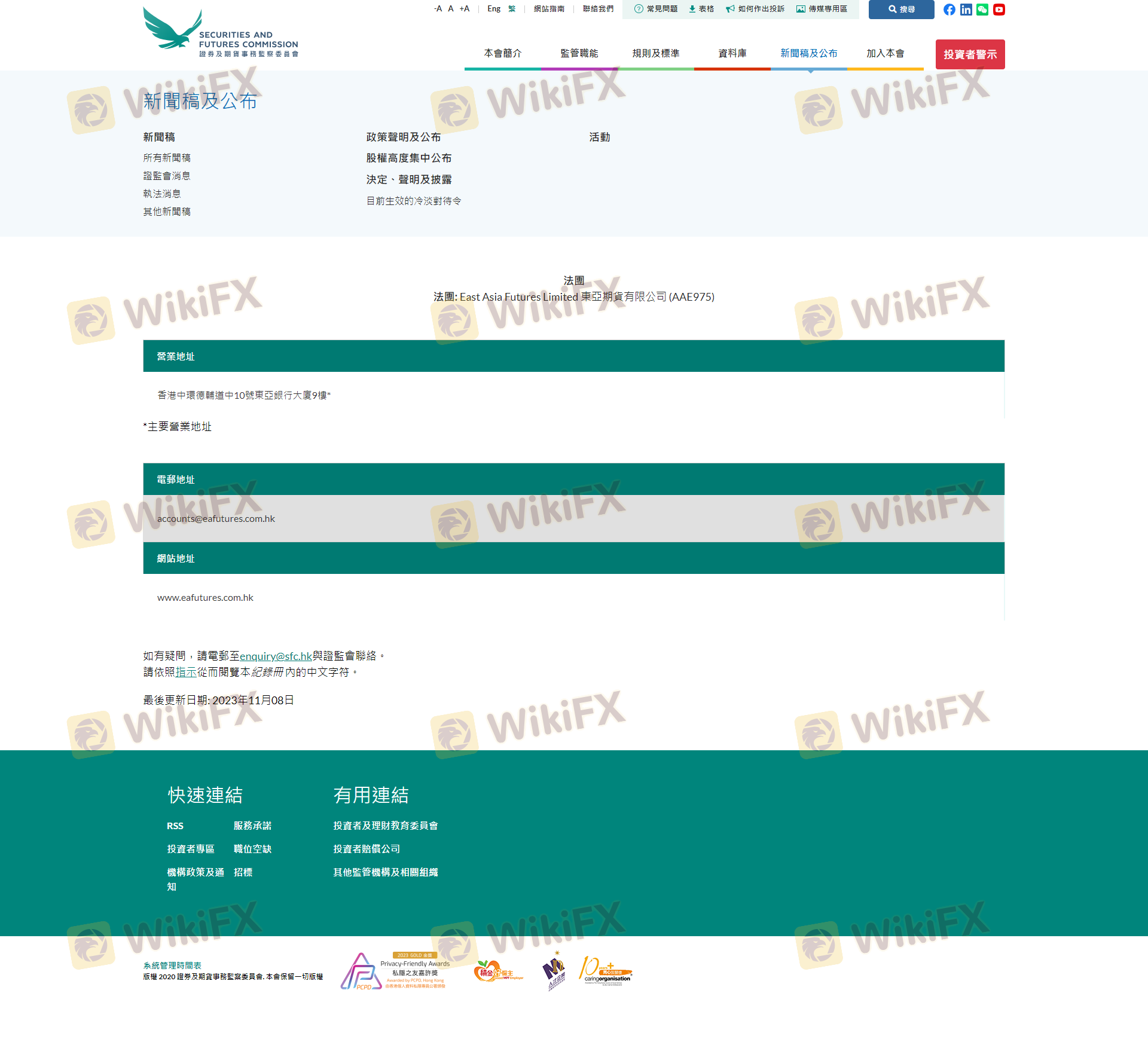The regulatory framework governing a brokerage is crucial in determining its legitimacy. East Asia Futures claims to be regulated by the Securities and Futures Commission (SFC) of Hong Kong. However, the lack of a clear and robust regulatory environment raises concerns about the broker's reliability. Below is a summary of the regulatory information: