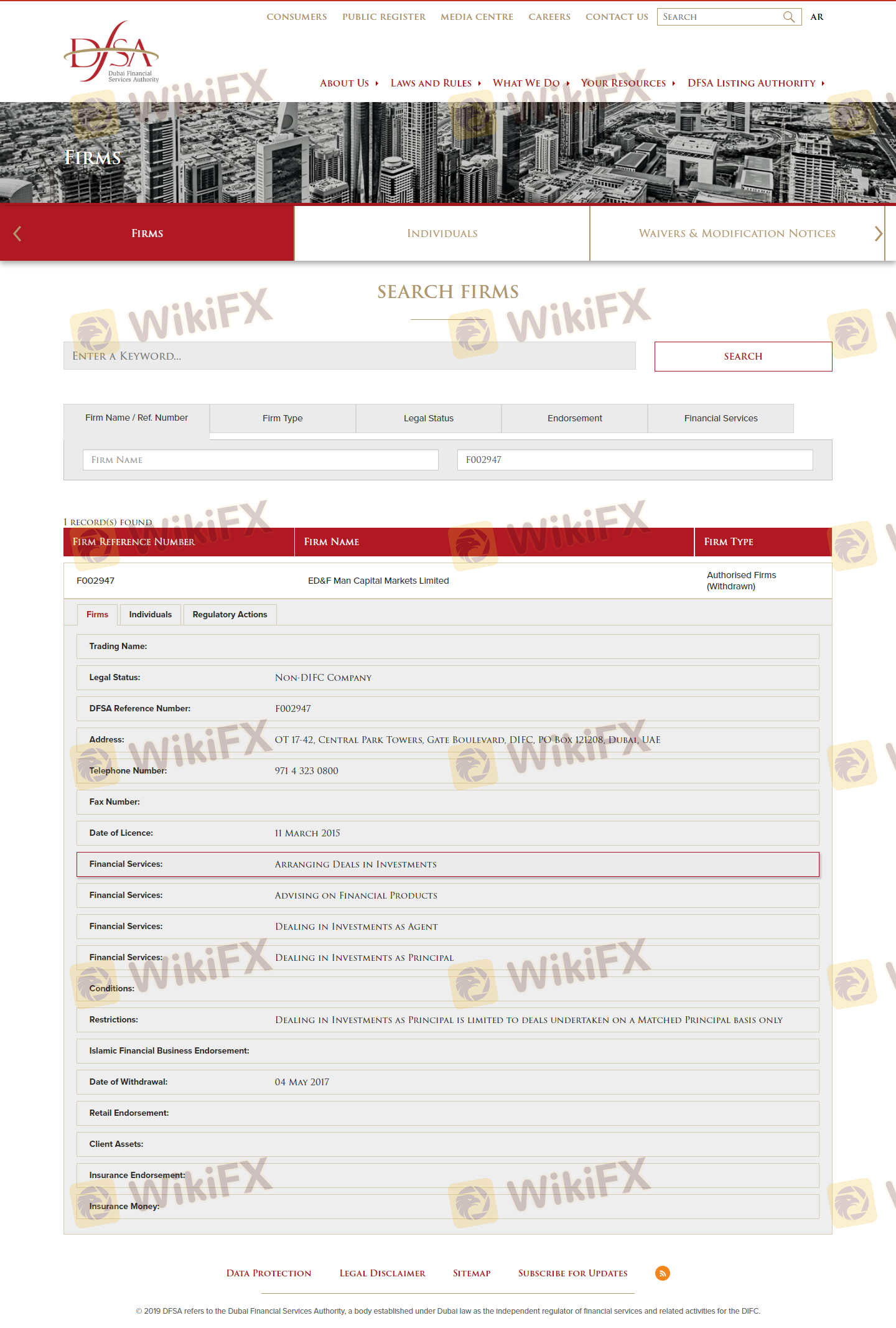 | Dubai Financial Services Authority (DFSA) | N/A | UAE | Revoked |