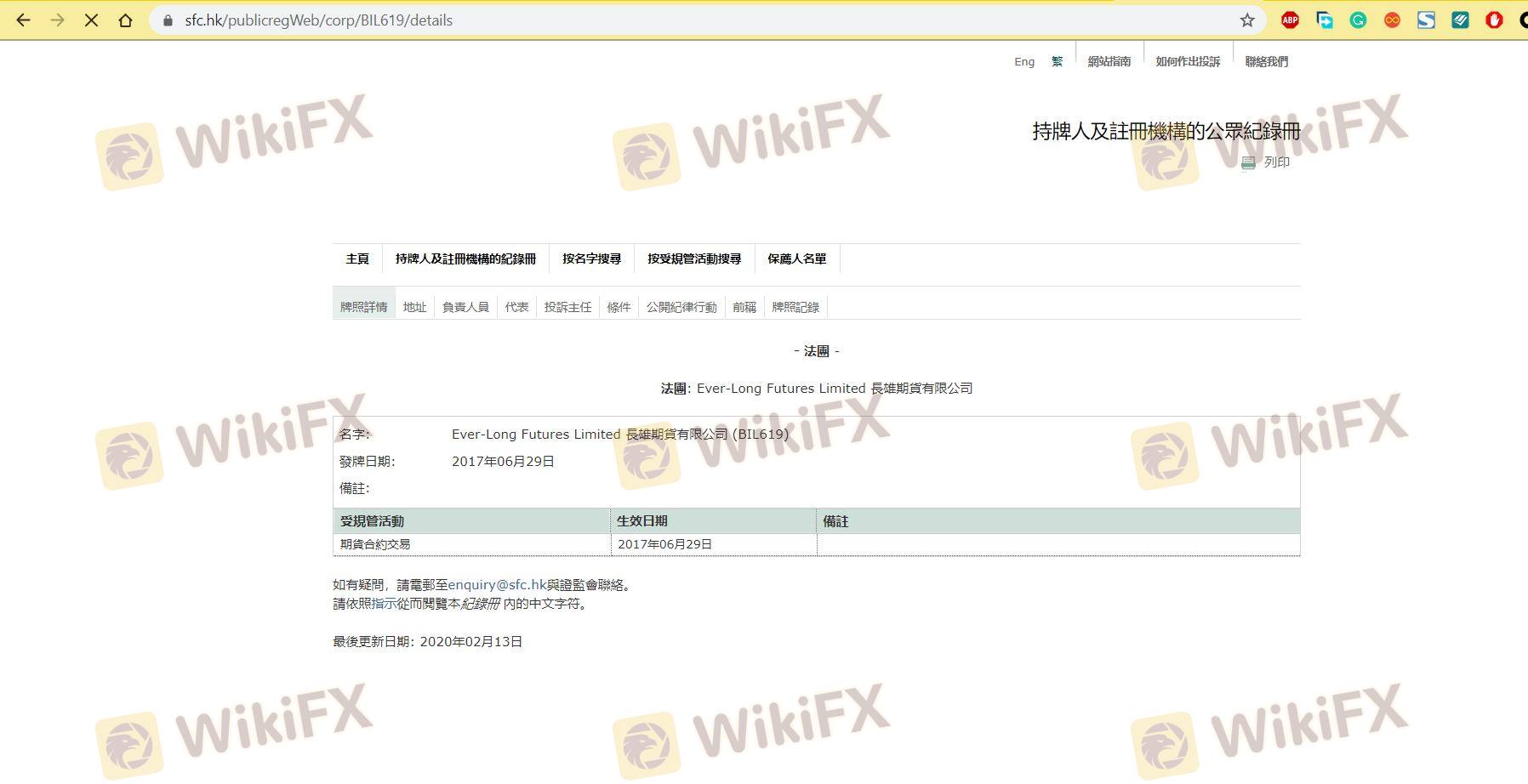 Regarding the legitimacy of Ever-long forex brokers, it provides SFC, SFC and WikiBit, (also has a graphic survey regarding security).