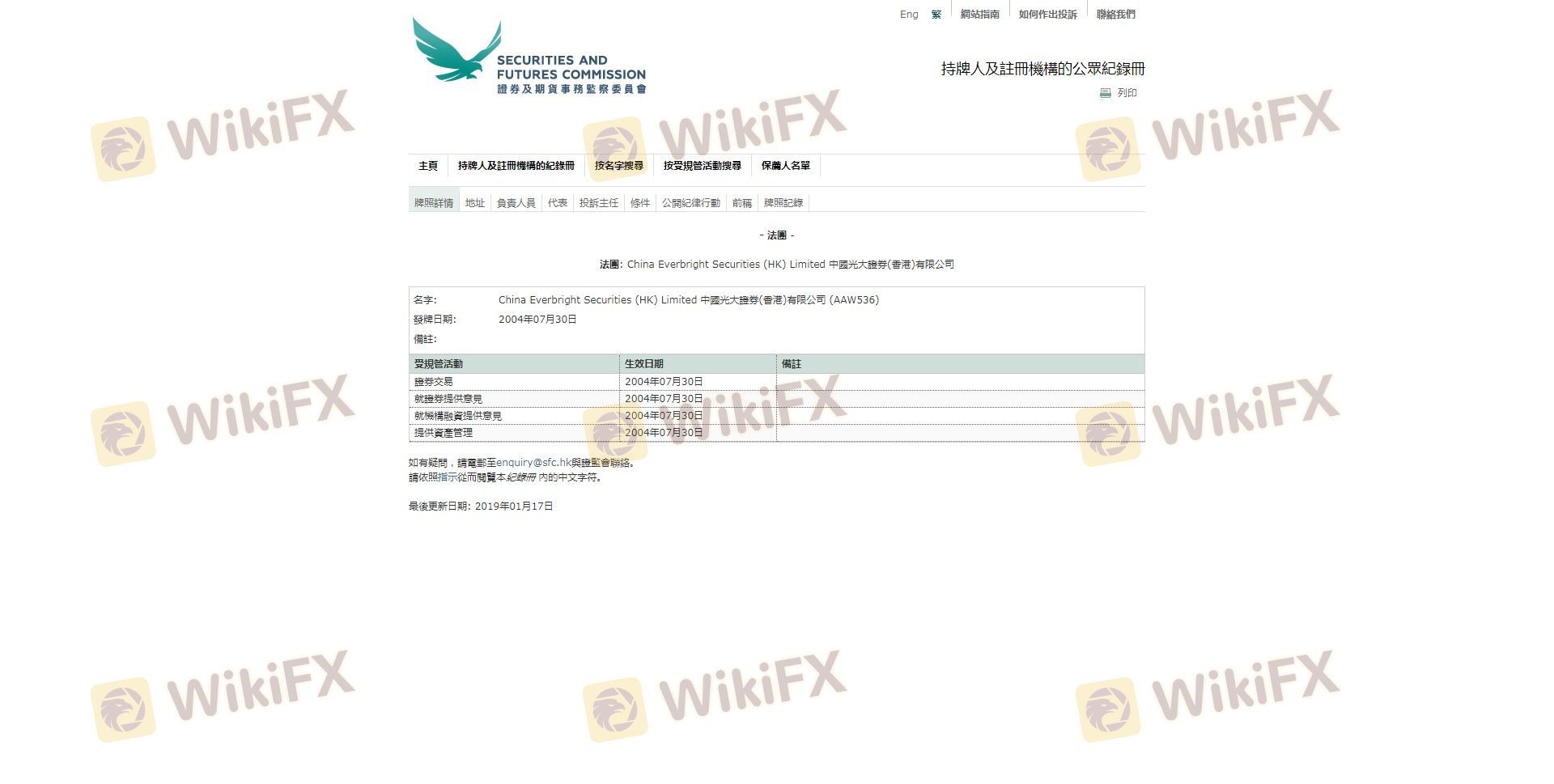 Regarding the legitimacy of Everbright Securities forex brokers, it provides SFC, SFC and WikiBit, (also has a graphic survey regarding security).