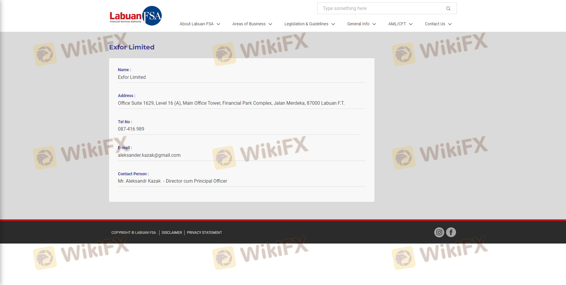 The regulatory status of a forex broker is one of the most critical factors that determine its legitimacy. Exfor claims to be regulated by the Labuan Financial Services Authority (LFSA) in Malaysia. However, scrutiny reveals that the broker is not listed in the LFSA's official database, raising doubts about its regulatory claims. The lack of a legitimate forex license from a recognized authority such as the Financial Conduct Authority (FCA) in the UK or the Australian Securities and Investments Commission (ASIC) is a significant red flag.
