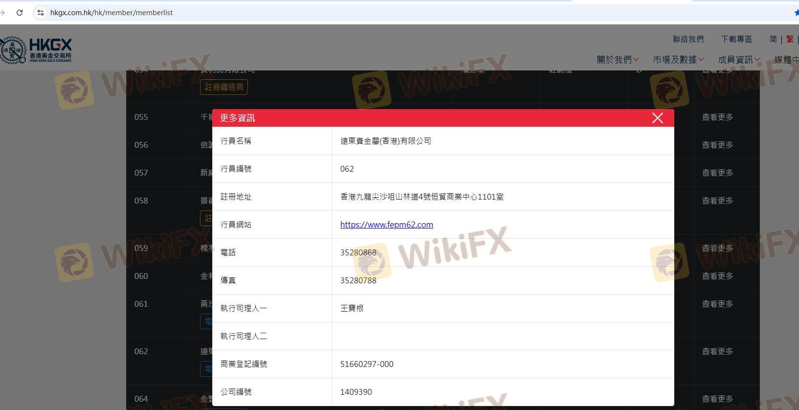 The regulatory status of a broker is a critical factor in determining its safety and legitimacy. FEPM claims to be regulated under the Hong Kong Gold Exchange (HK GX), holding a Type A1 license. Regulatory oversight is crucial as it ensures that brokers adhere to specific standards of conduct and operational transparency. Below is a summary of FEPM's regulatory information: