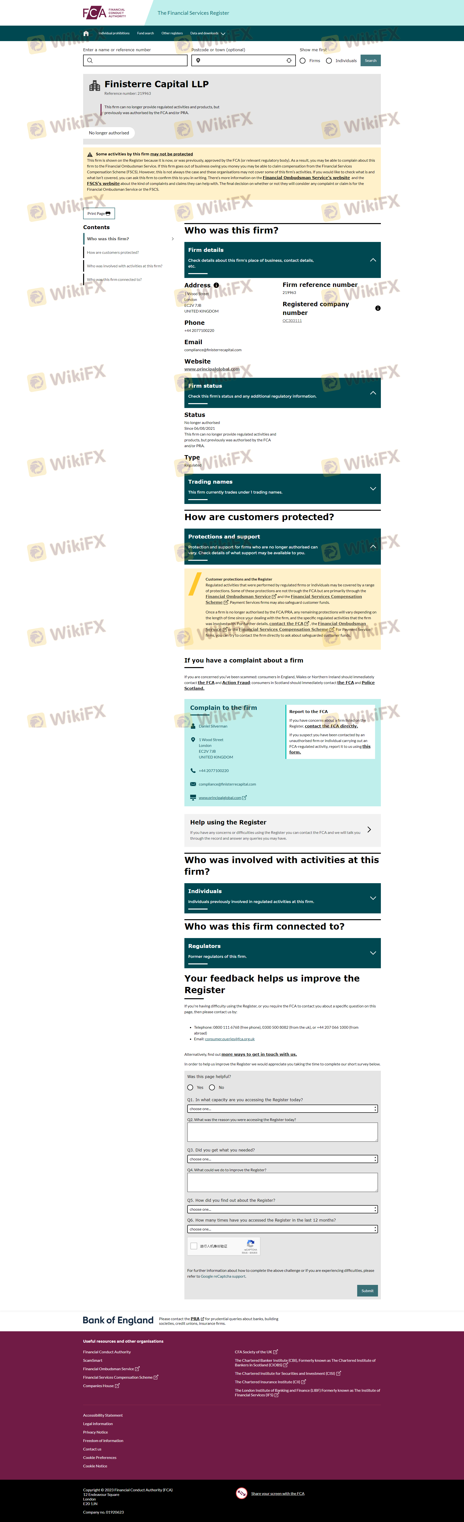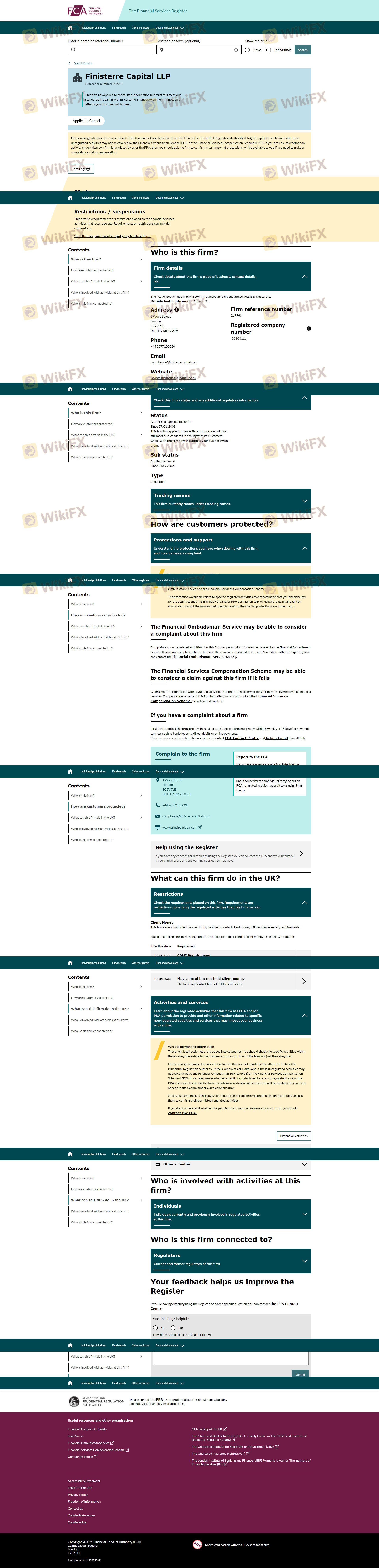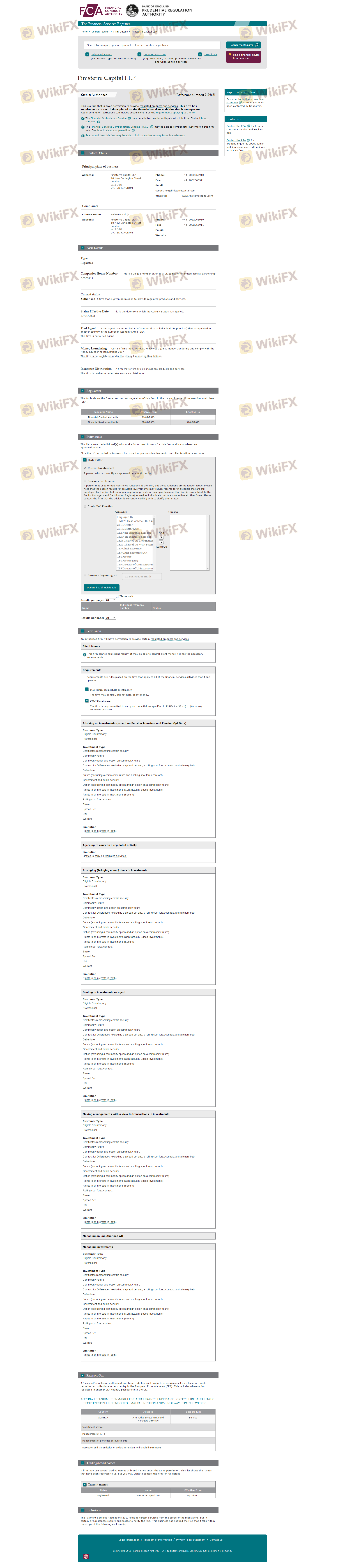 The regulatory status of a trading firm is a critical indicator of its legitimacy and safety. Finisterre Capital was previously regulated by the Financial Conduct Authority (FCA) in the UK, holding a license number of 219963. However, it is important to note that this license was revoked, raising concerns about the firm's current regulatory standing. Below is a summary of the regulatory information: