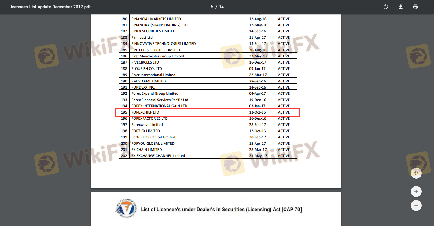 Regarding the legitimacy of ForexChief forex brokers, it provides VFSC and WikiBit, .