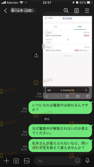 Several users have described their experiences as distressing, with claims of being unable to access their funds even after multiple requests. Such complaints highlight a concerning trend that raises questions about the broker's reliability and commitment to customer service. The lack of effective resolution to these issues further compounds the perception of Foya Limited as a potentially unsafe broker.