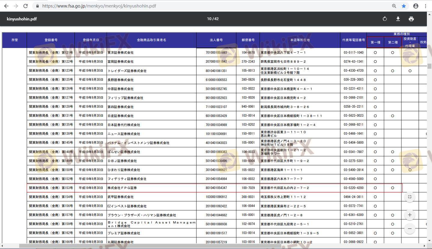 Understanding the regulatory status of a broker is critical for ensuring the safety of funds and compliance with industry standards. FPG Securities claims to be regulated by Japan's Financial Services Agency (FSA). However, the effectiveness of this regulation has been called into question by various sources. The following table summarizes the core regulatory information for FPG Securities: