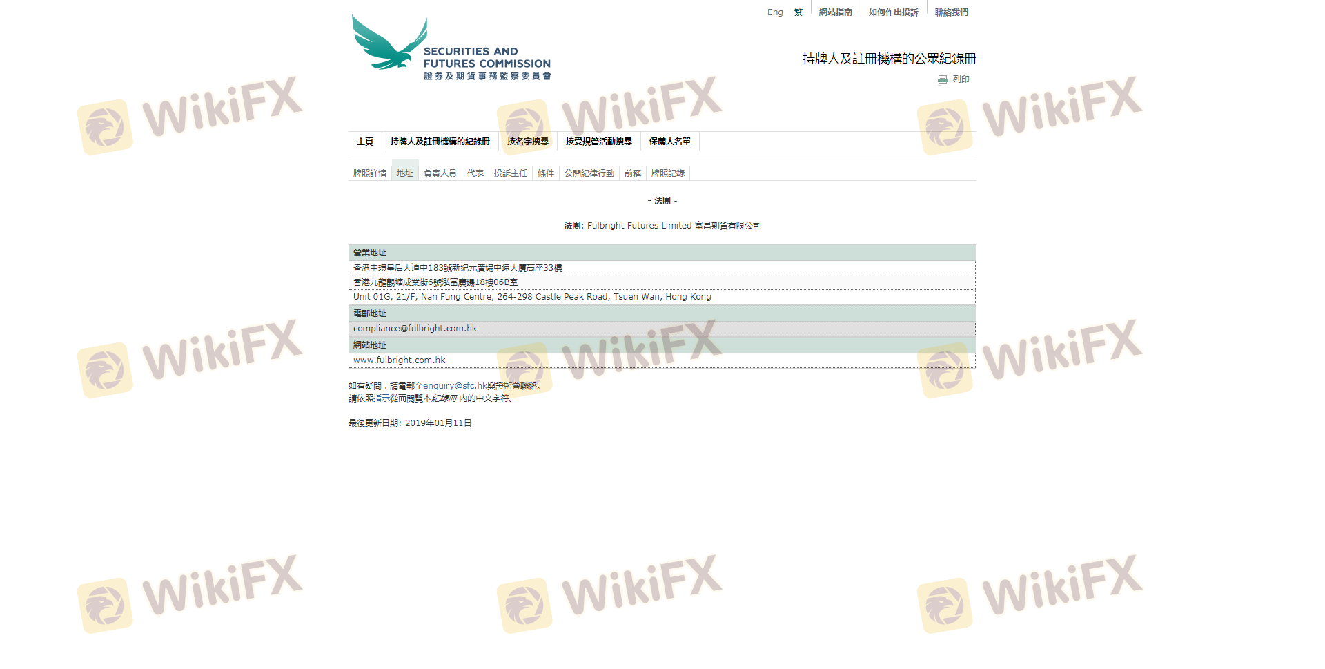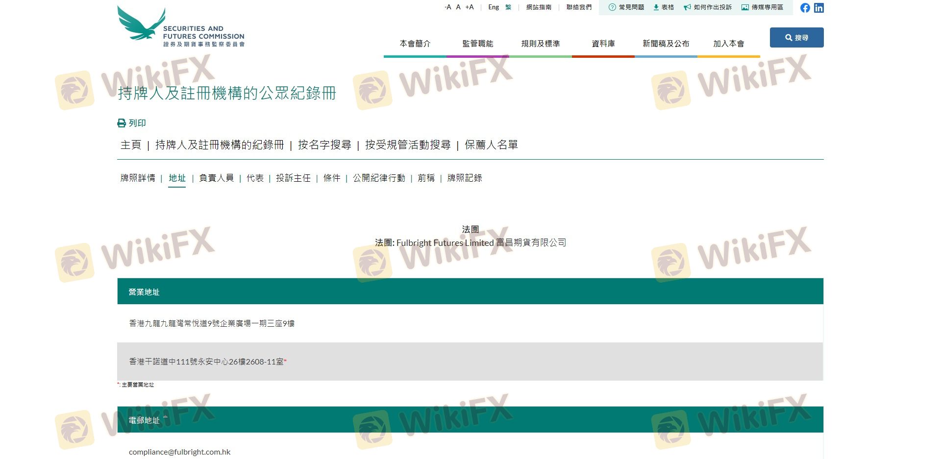 A crucial aspect of evaluating any forex broker is understanding its regulatory framework. Regulation serves as a safety net for investors, ensuring that brokers adhere to stringent financial standards and practices. In the case of Fulbright, it claims to operate under the oversight of the Securities and Futures Commission (SFC) in Hong Kong. Below is a summary of the key regulatory information related to Fulbright: