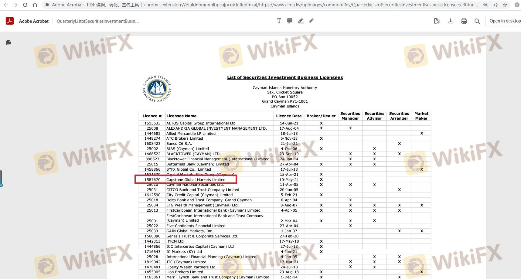 | CIMA | 1587670 | Cayman Islands | Exceeded |